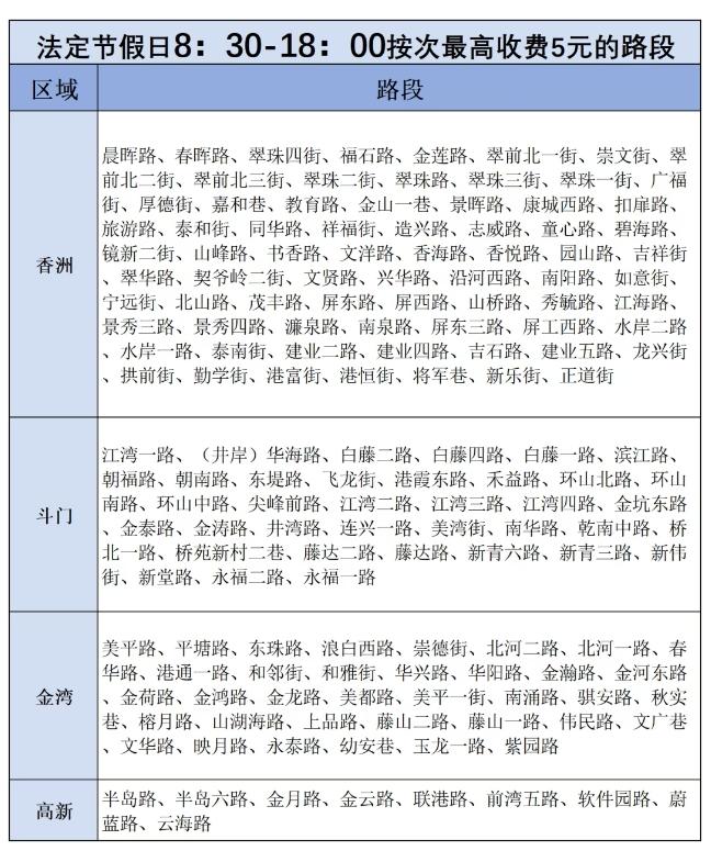 其中,香洲区多达73条路段,斗门区37条路段,金湾区36条路段,高新区也有9条路段纳入优惠范围。