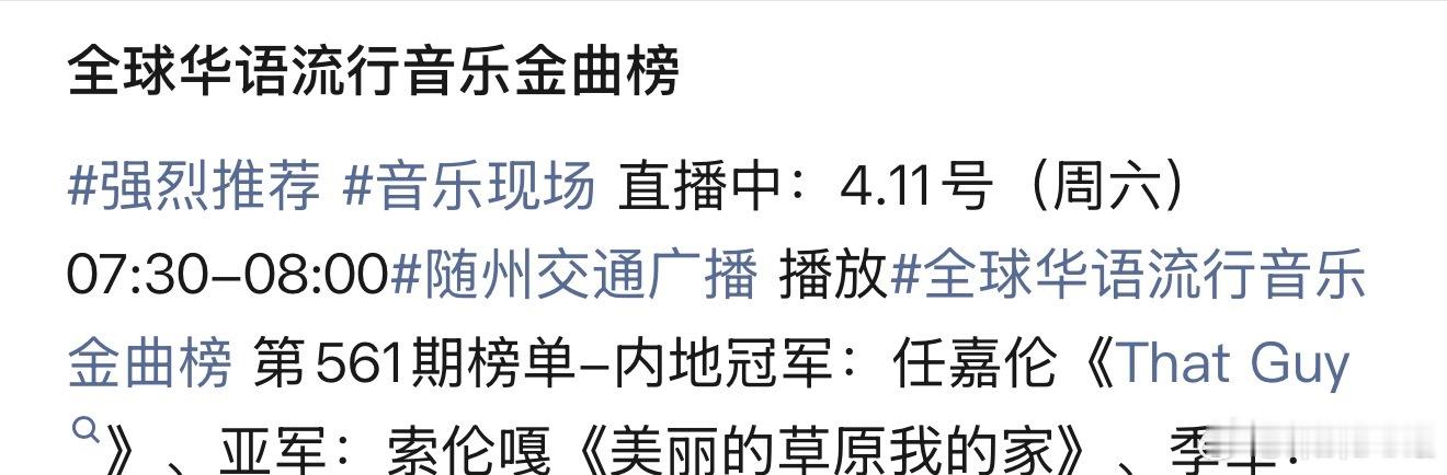 任嘉伦凭借《That Guy》斩获全球华语流行音乐金曲榜冠军,这确实是一个值得骄傲的成就!这首歌展现了他作为全能艺人的实力——从演员到歌手的跨界,他用作品证明了自己的音乐才华。《That Guy》融合了现代流行元素与他独特的个人风格,旋律抓耳,舞台表现力更是一如既往地稳。这个冠军不仅是对他音乐功底的认可,也体现了他在华语乐坛日益增长的影响力。从古装剧男神到唱跳俱佳的歌手,任嘉伦一直在突破自我,用作品说话。恭喜任嘉伦!