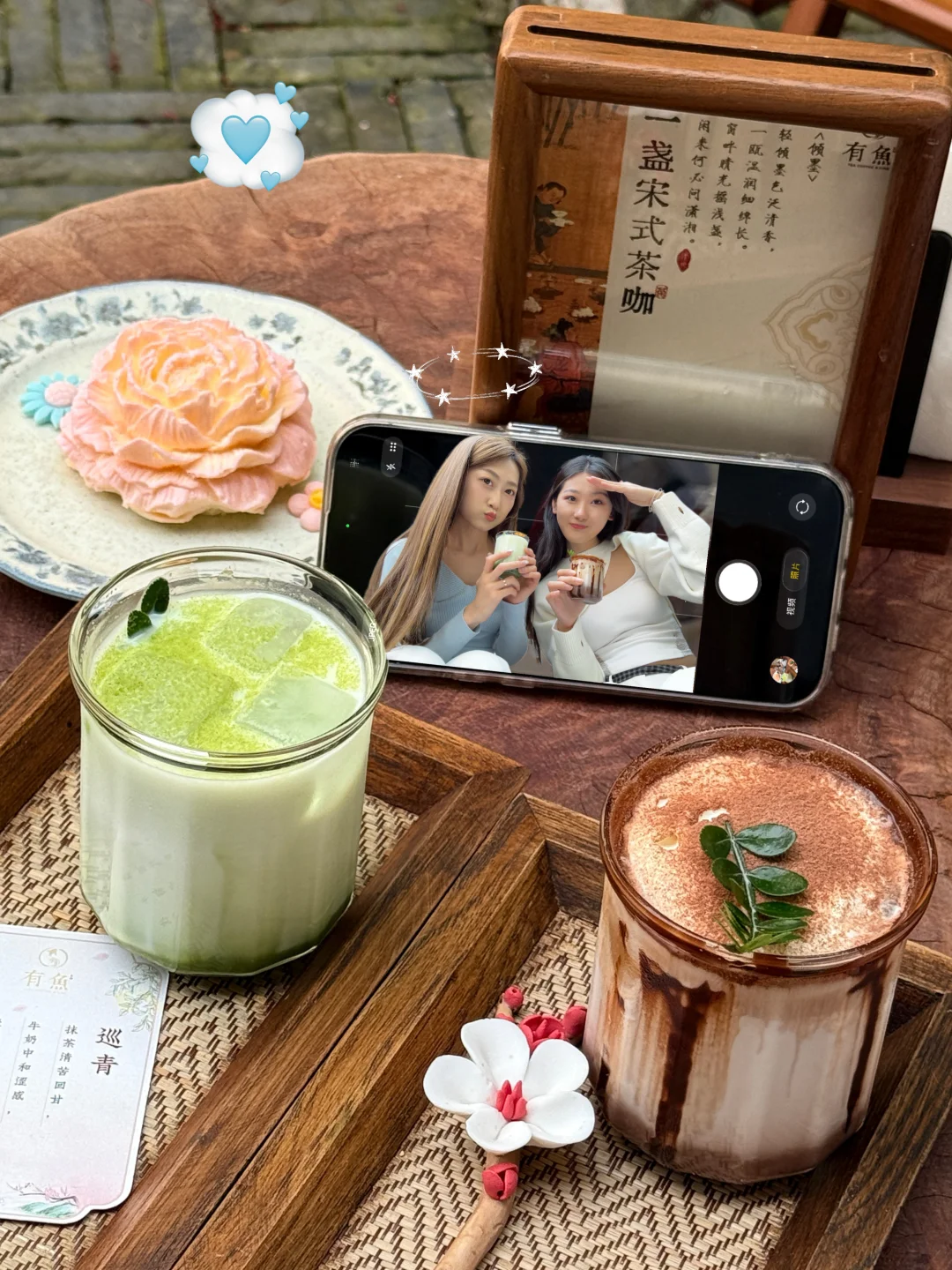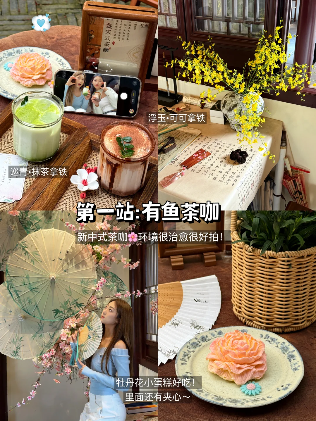🍵推荐巡青抹茶拿铁,浮玉较甜,牡丹花小蛋糕有夹心蛮好吃🍰~