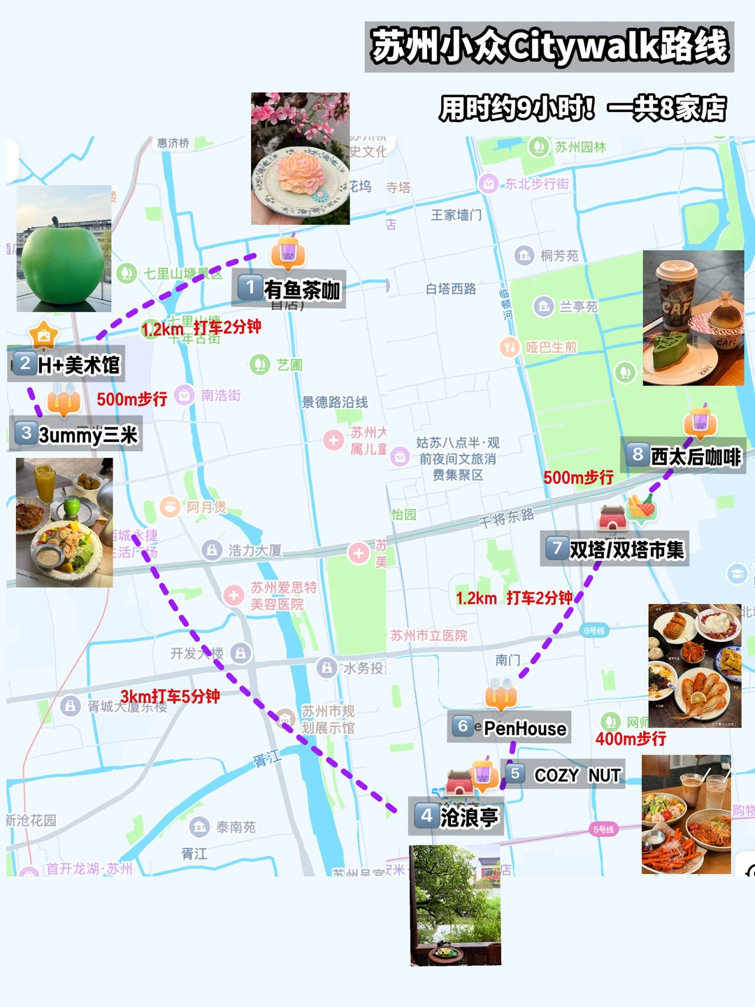📍路线:有鱼茶咖-H+美术馆-3ummy三米-沧浪亭-COZY NUT-Penhouse-双塔/双塔市集-西太后咖啡