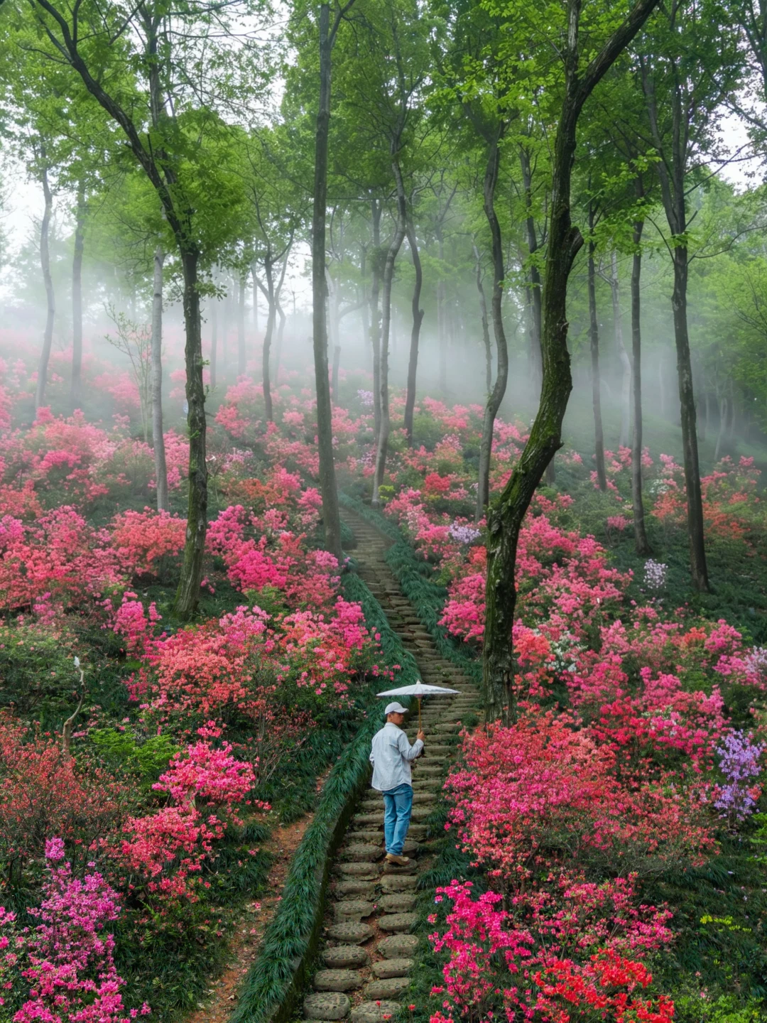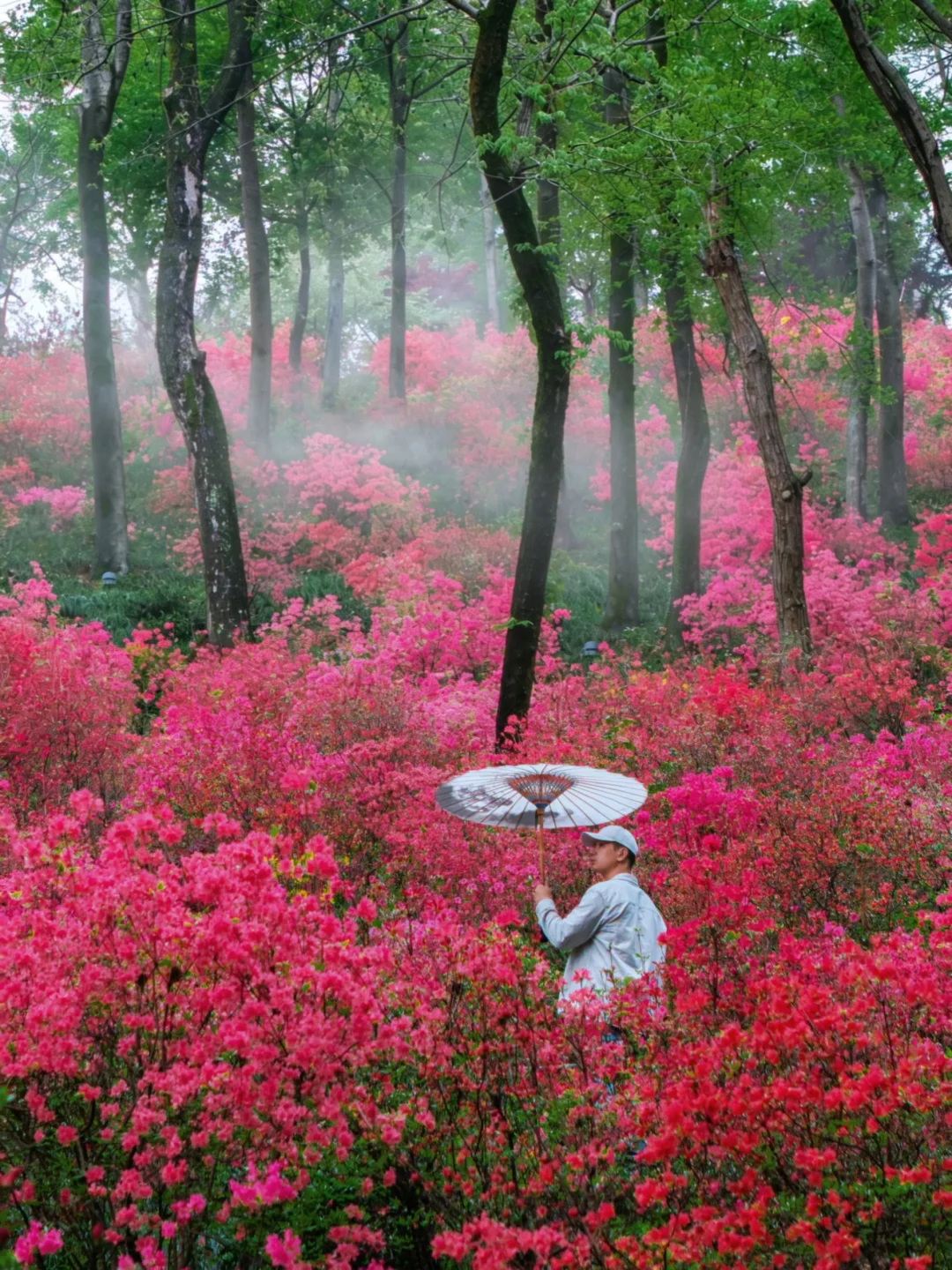 👉🏻四月天气正舒服,晴天雨天各有各的味道,都不影响玩~我个人尤其偏爱雨天一大早去看晨雾,那时候的杜鹃花海笼罩在薄雾里,太美了~