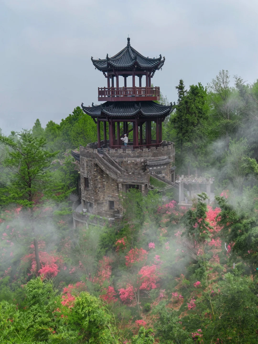 人间四月天,山谷间的映山红开疯了!沿兰花谷一路往上,步步是景,满坡满谷的杜鹃像打翻了调色盘~一个人走走停停,拍照、发呆、深呼吸,山顶有咖啡和素面,坐在窗边吹春风~大碉堡雨后烟雾缭绕,美得像仙境~等到天色暗下来,景区亮起暖黄色的灯光,星星点点缀在山间,像闯进了宫崎骏的童话世界,太梦幻~