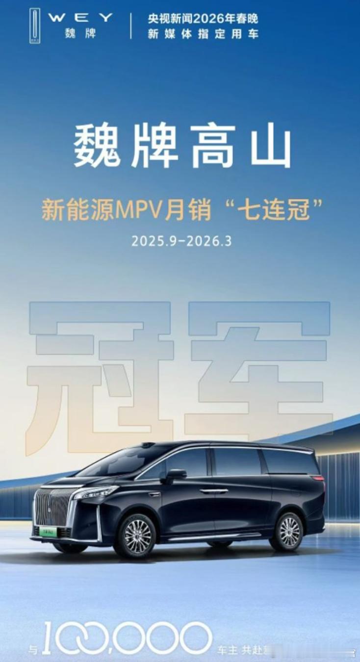 没想到魏牌高山家族已经连续7个月拿下了新能源MPV的销冠,现在已经完成了第10万台的下线了