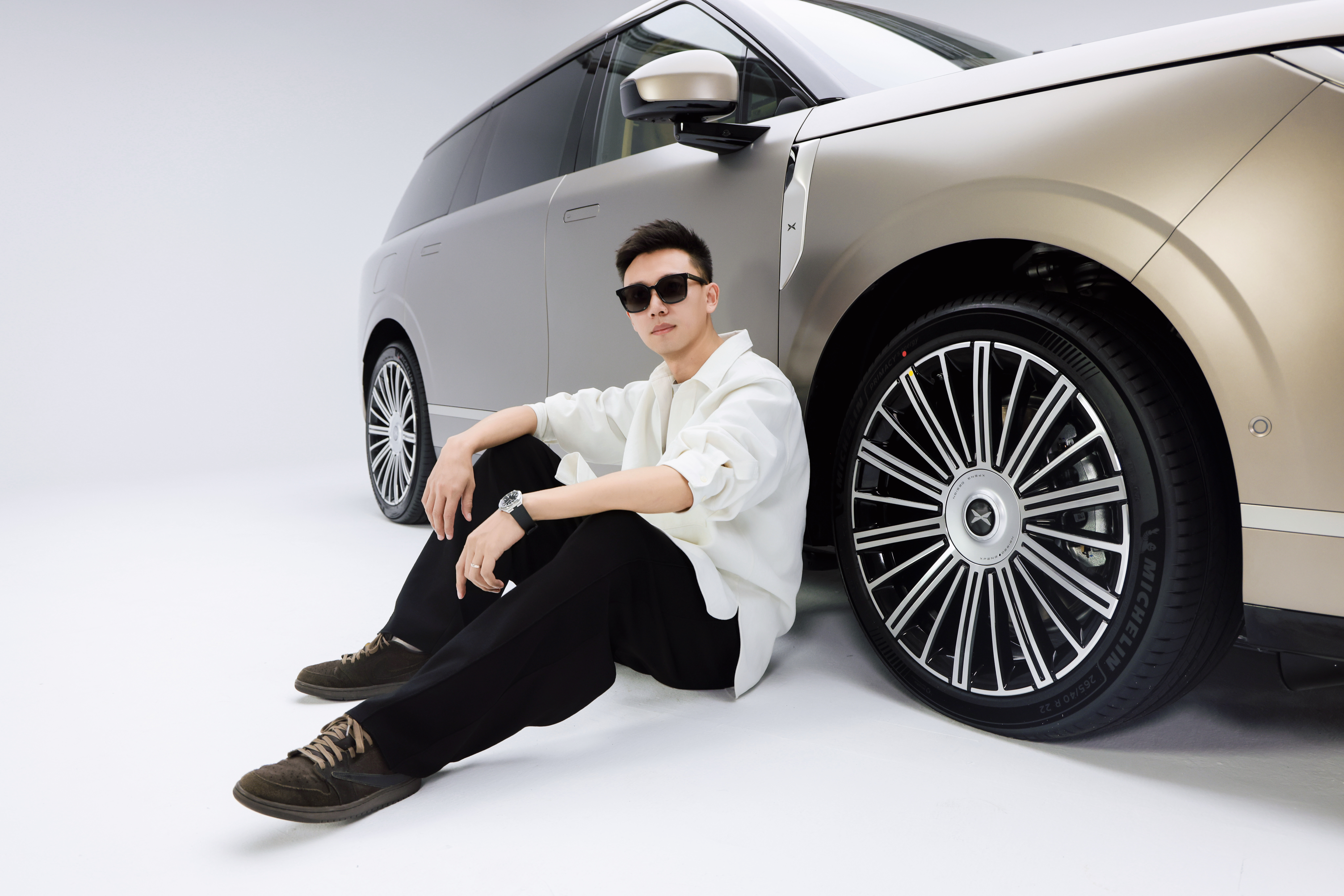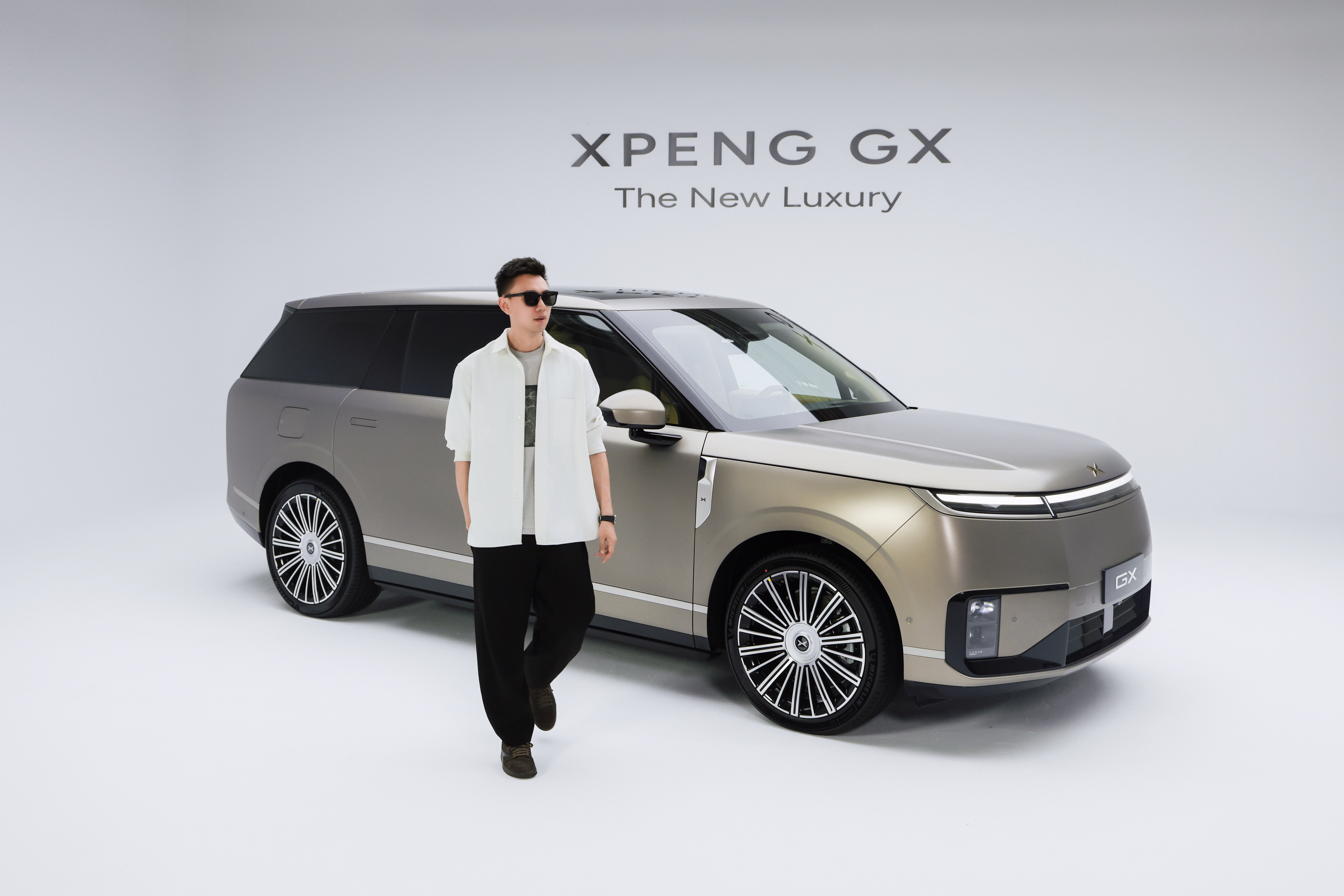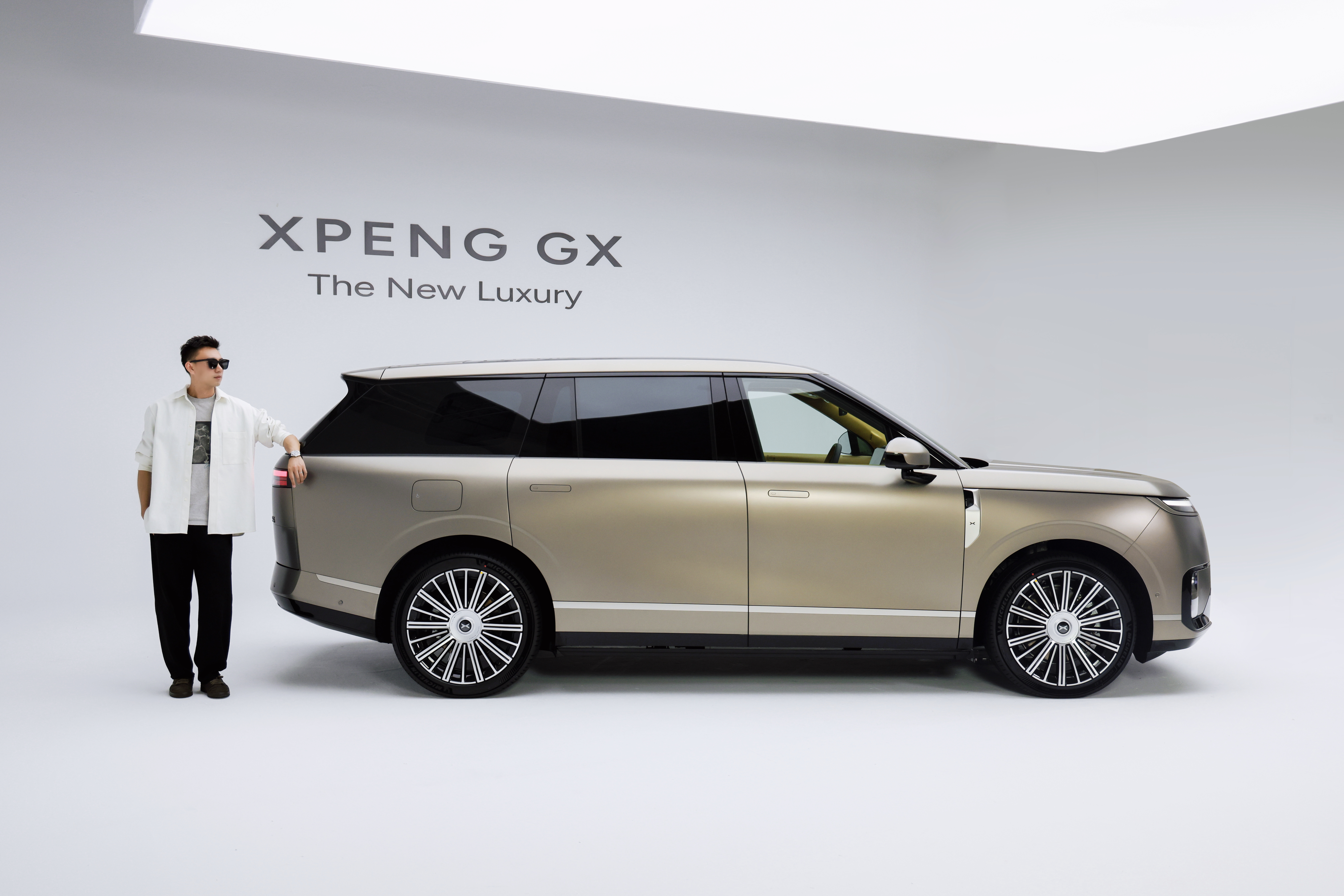 小鹏GX技术发布会定档4月15日 浅浅的拍一组合影,这个是云漠金车漆,哑光质感看