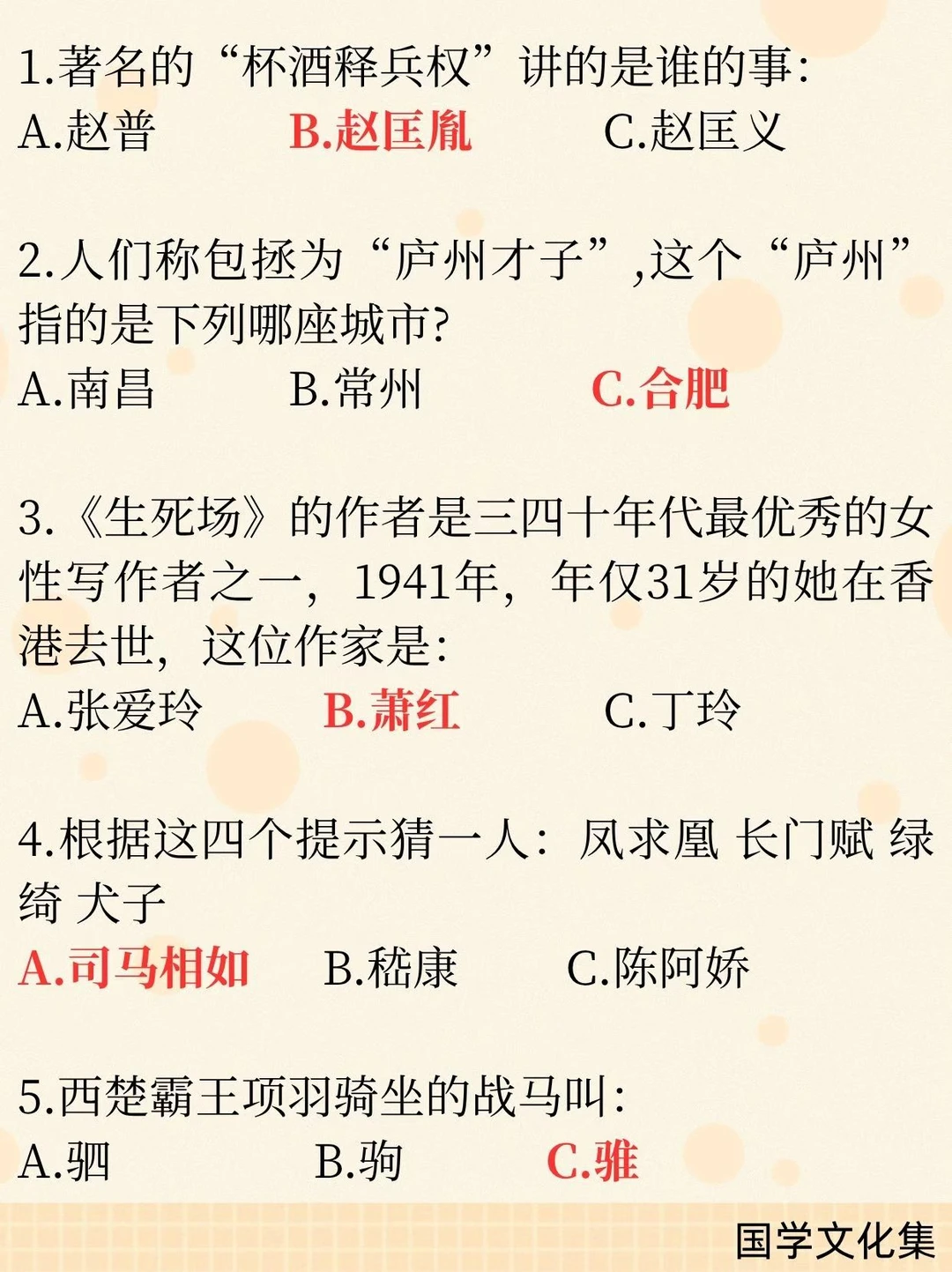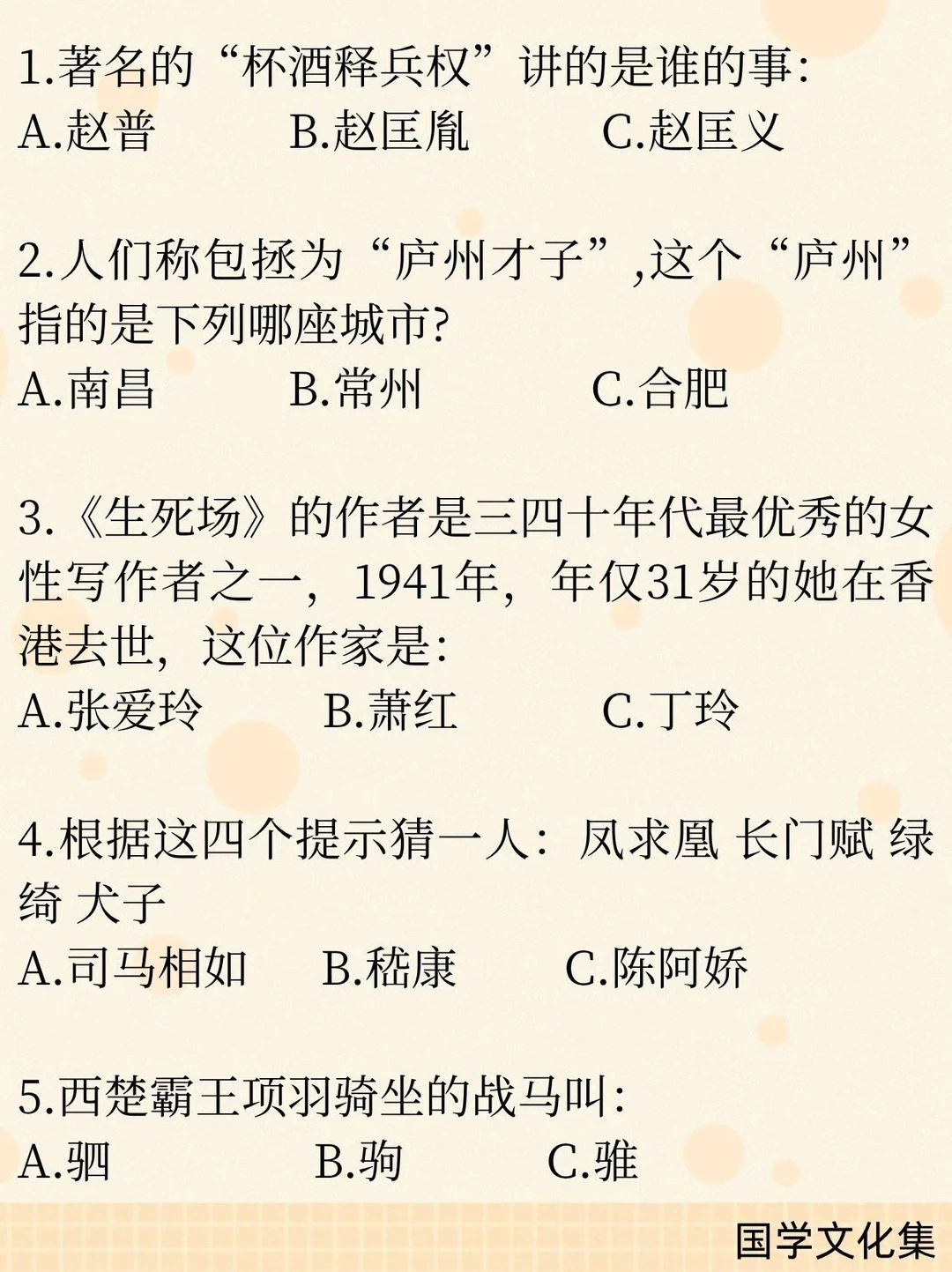 15. 项羽战马名为骓(乌骓马)。