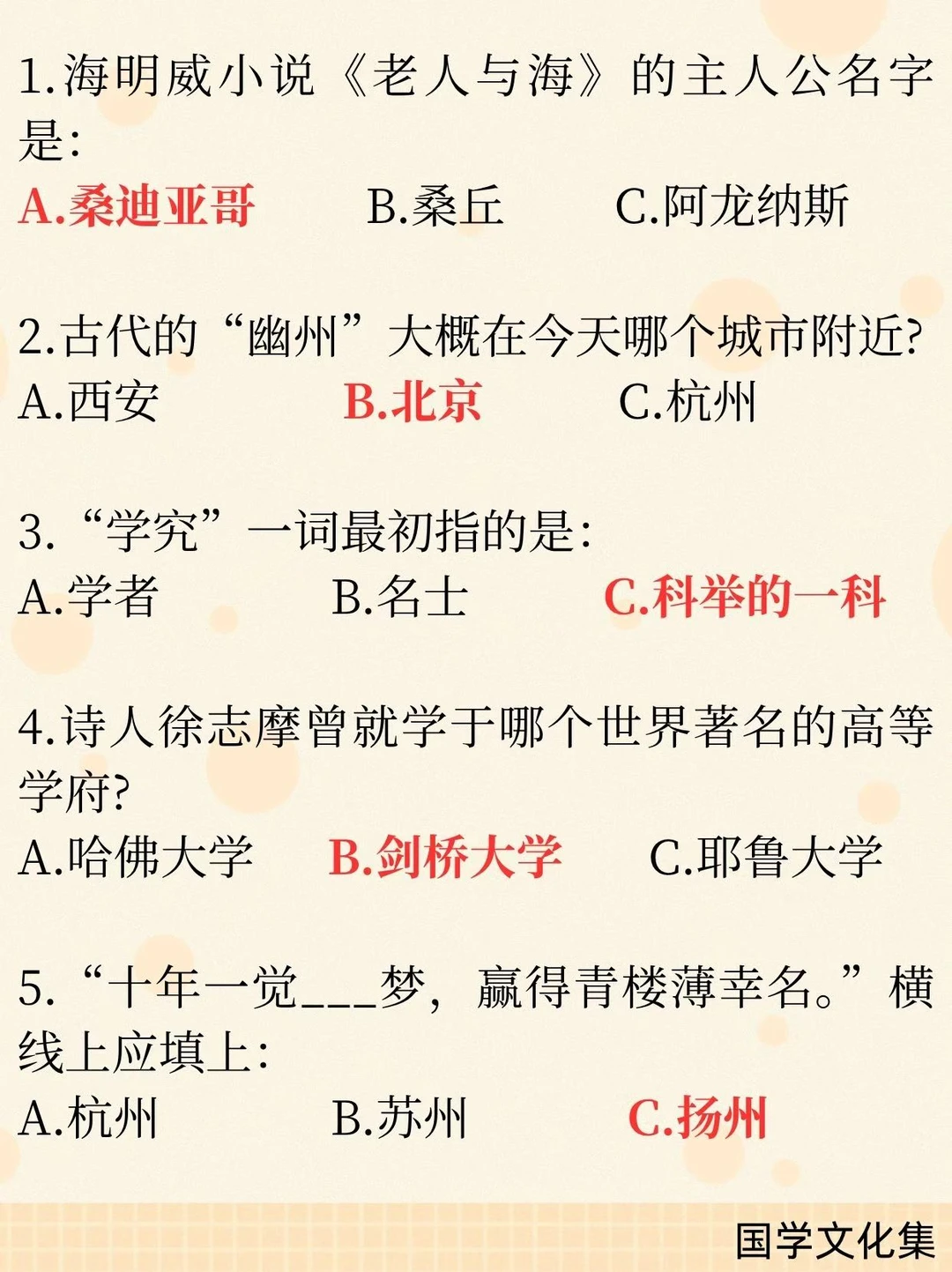 10. “十年一觉扬州梦” 填扬州。