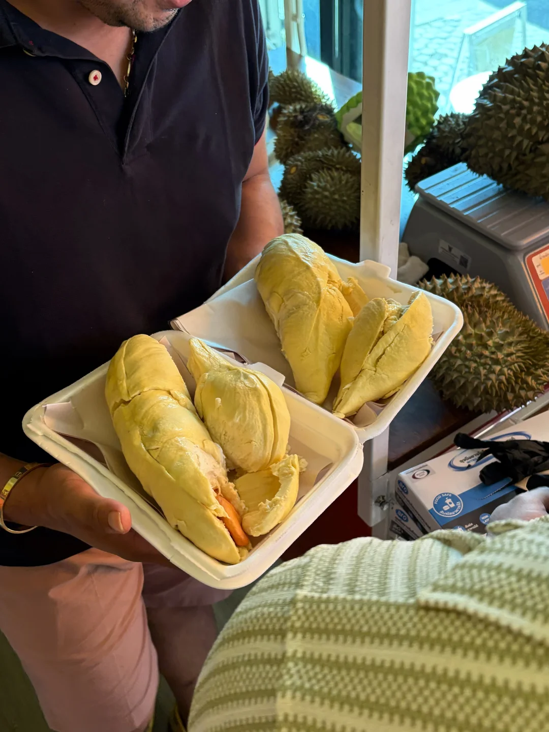 清迈!!JJ市集附近!!!50r买了一整个榴莲。。。