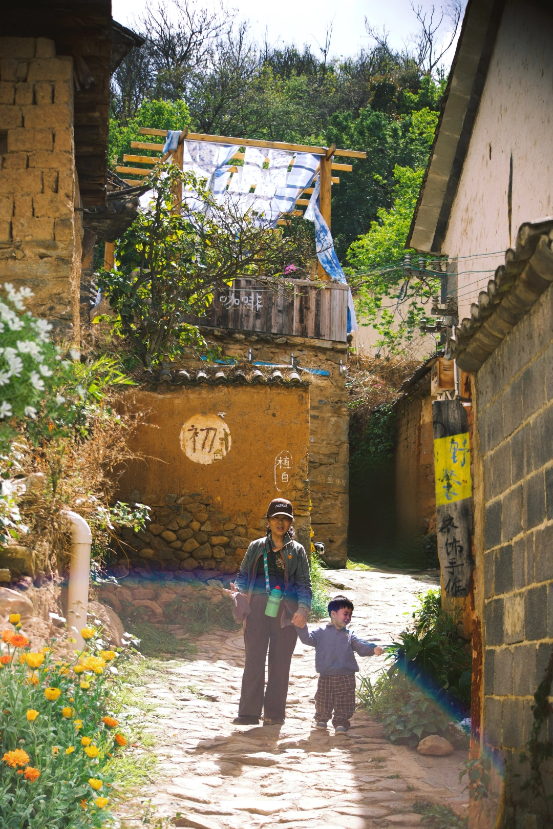 早上睡到自然醒,下午才慢悠悠开车来这里,也没有特别的安排,在村里走走停停拍照。虽然石板路不太好走,但娃觉得很有趣,全程自己走,完美释放他的能量!累了在小院喝茶小坐,非常惬意