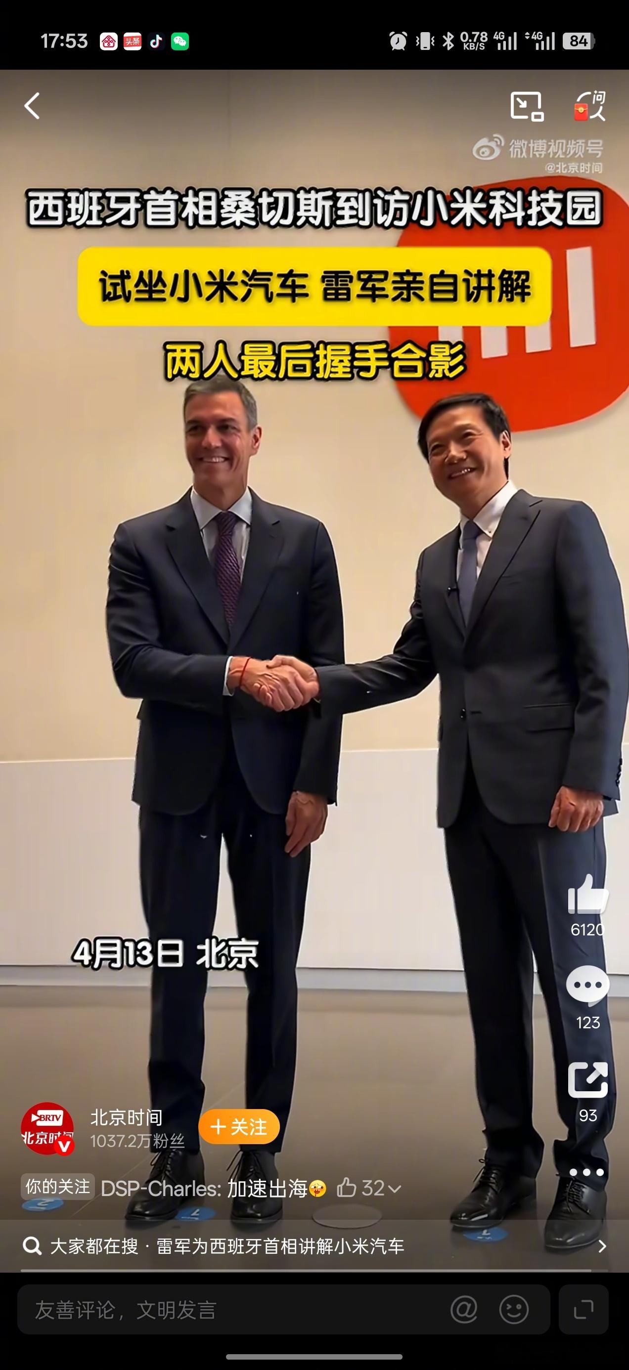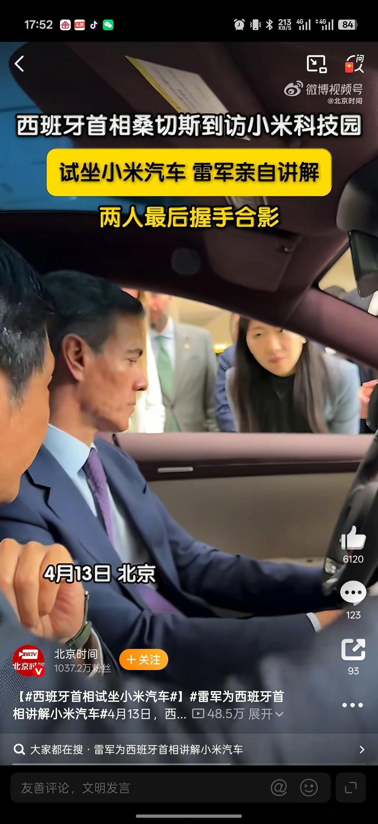 西班牙首相试坐小米汽车 “我在XX很想你”的风也吹到了小米汽车了吗?西班牙首相来中国去了两个地方,一个清华一个小米汽车!有趣的是,虽然小米YU7和新SU7在海外还没有上市,咱西班牙首相来小米汽车后,也去试坐了小米YU7、新一代SU7!小米汽车不愧是咱们中国汽车的牌面! 其实在西班牙首相来的前一天,咱郑丽文也来参观的小米汽车!连续两天两位重磅访客,看来咱小米的魅力还真不一般!自从纽北赛道上的一鸣惊人,如今小米在海外名气大增!如今西班牙首相还来到小米汽车试驾,说不定后续咱们还能看到中西科技产业合作深化!