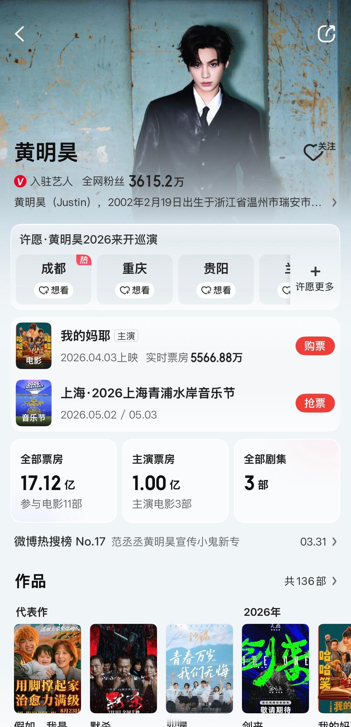 芝士娱乐 黄明昊的权威我后知后觉‼️恭喜黄明昊成为主演票房过亿的00后男演员可塑