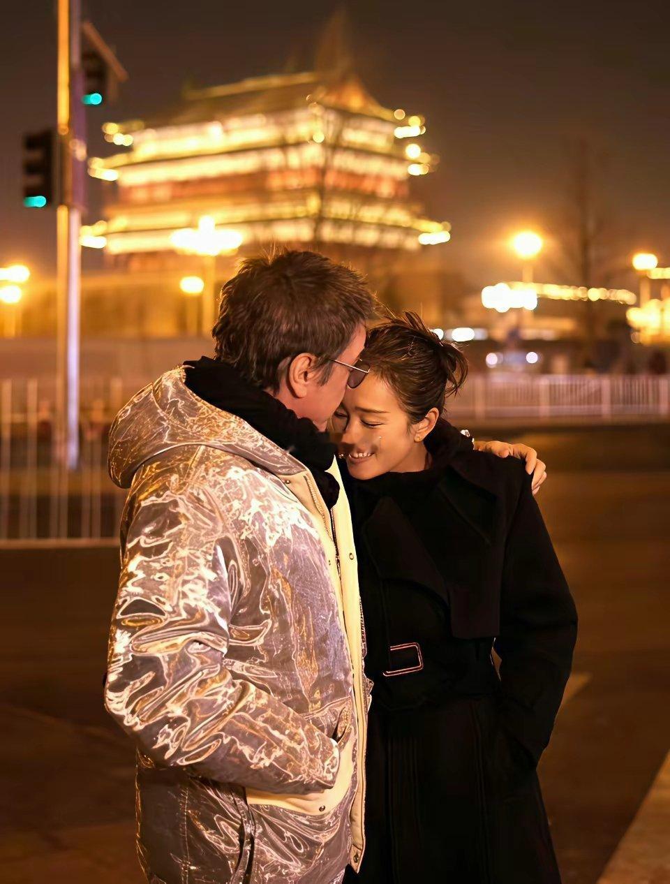59岁的巩俐,被77岁的丈夫当街紧紧挽住手。 北京初雪那天,他们从白天走到黑夜。