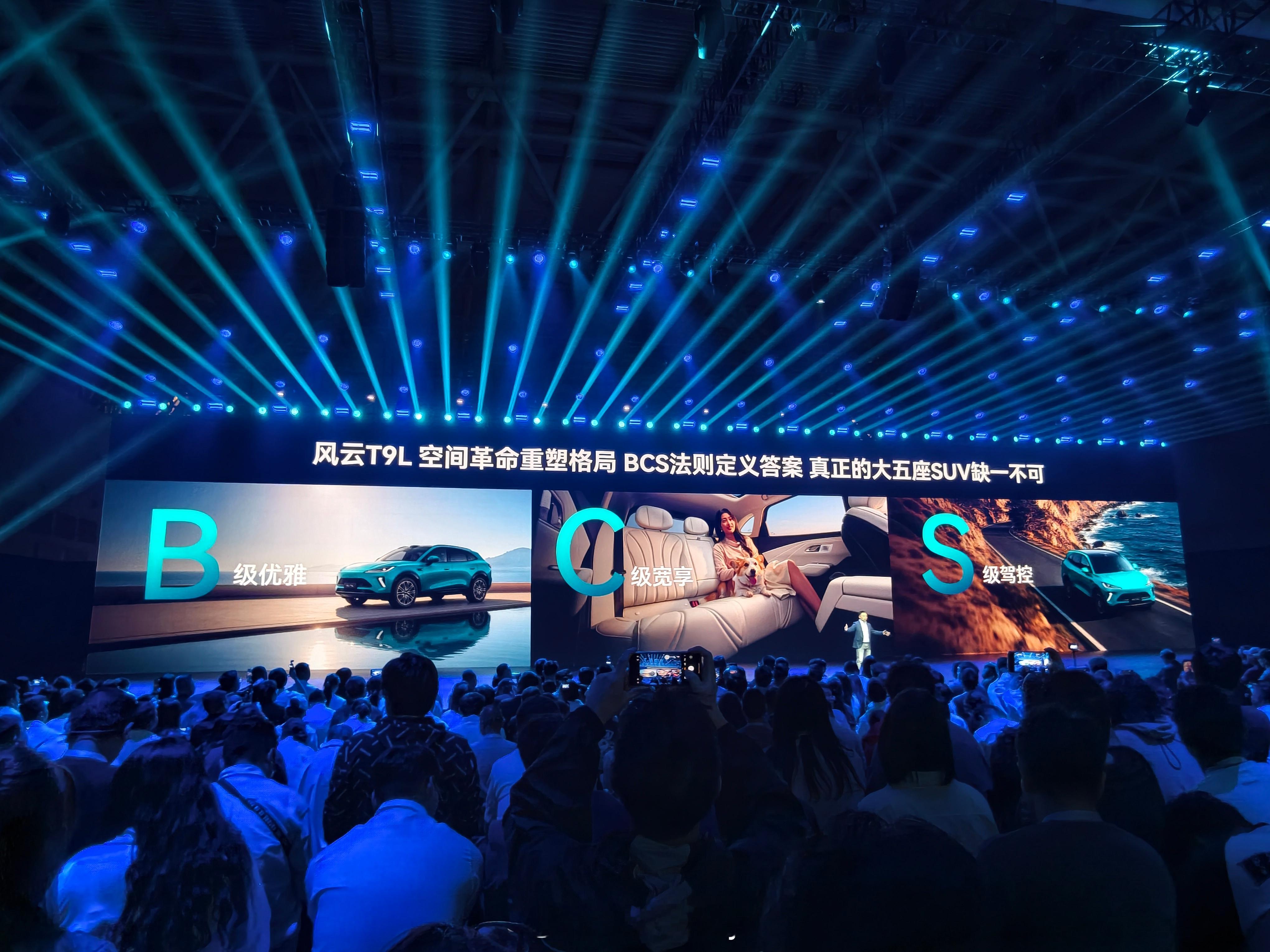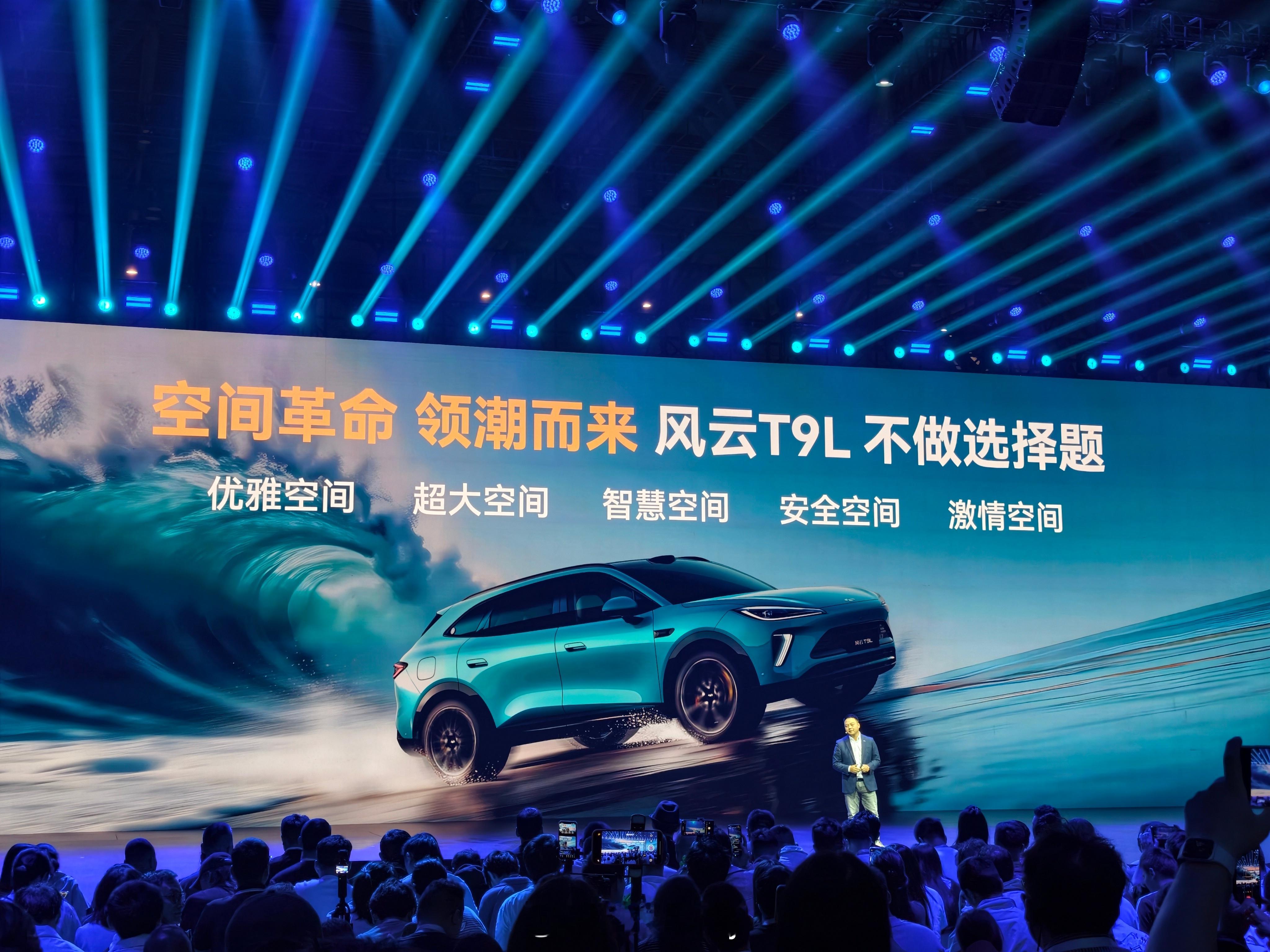 风云T9L,买车不做选择题,空间革命,领潮而来,优雅大空间空间安排,超大空间安排,智慧空间安排,安全空间安排,激情空间安排,你在意的空间感受它都安排明白了。B级优雅,C级宽敞,S级驾控,全部拿捏。以优雅来说,东方美学全面贯彻,留白的前脸,点墨大灯,银钩,水墨长虹尾灯,好看又有好寓意,辨识度拉的满满的。极致轮轴比轮高比,优雅一眼就能看见,低风阻设计,兼顾功能性和美感,六款车色,各显风格,你喜欢哪个?我最爱雪岭白,经典又好看。内饰设计,很雅,很显格调,256色氛围灯点缀生活,三种座舱颜色,我喜欢水墨霁蓝。好看直观展现,车是和我们一起同行,行走的名片,显格调和品味。智美大五座风云T9L全球上市 风云T9L上市12.99万元起 B级优雅C级宽享S级驾控 重庆·重庆国际博览中心