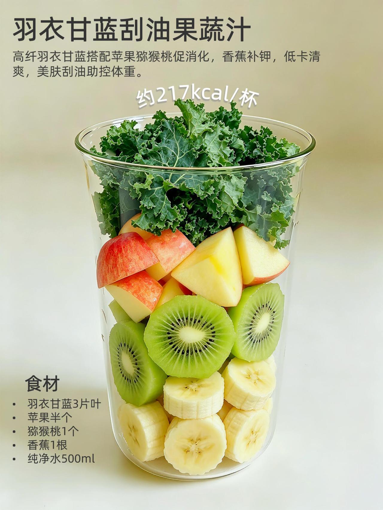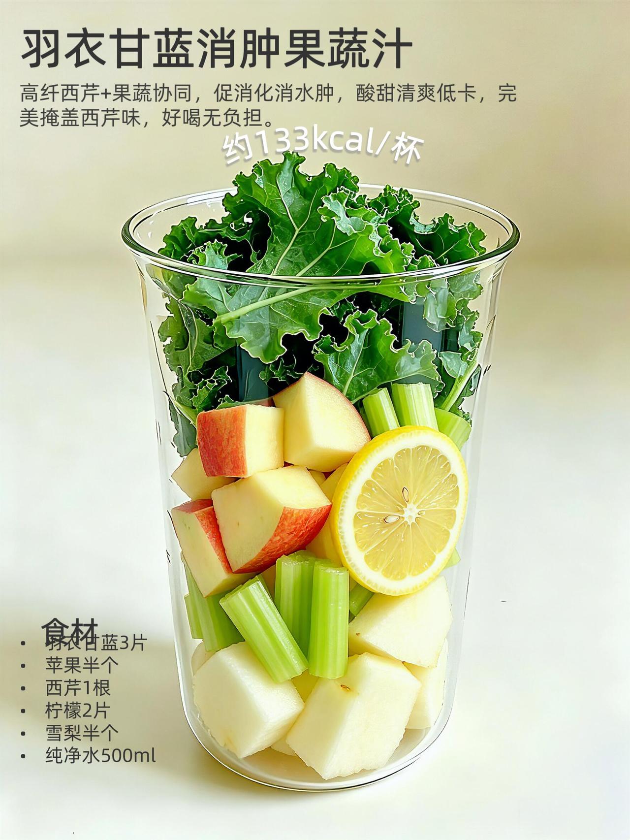 1️⃣消肿王炸组合:羽衣甘蓝+苹果+西芹+香蕉