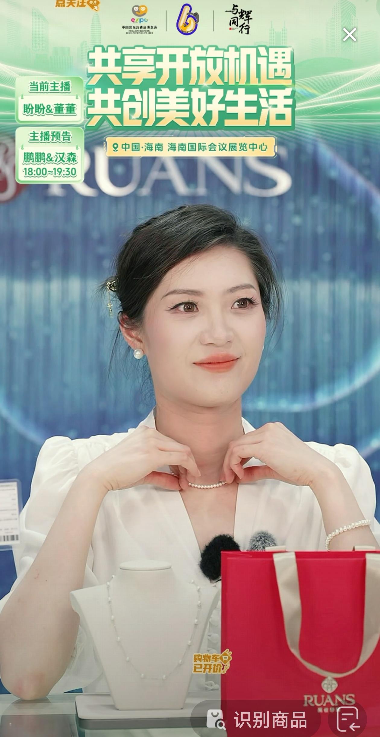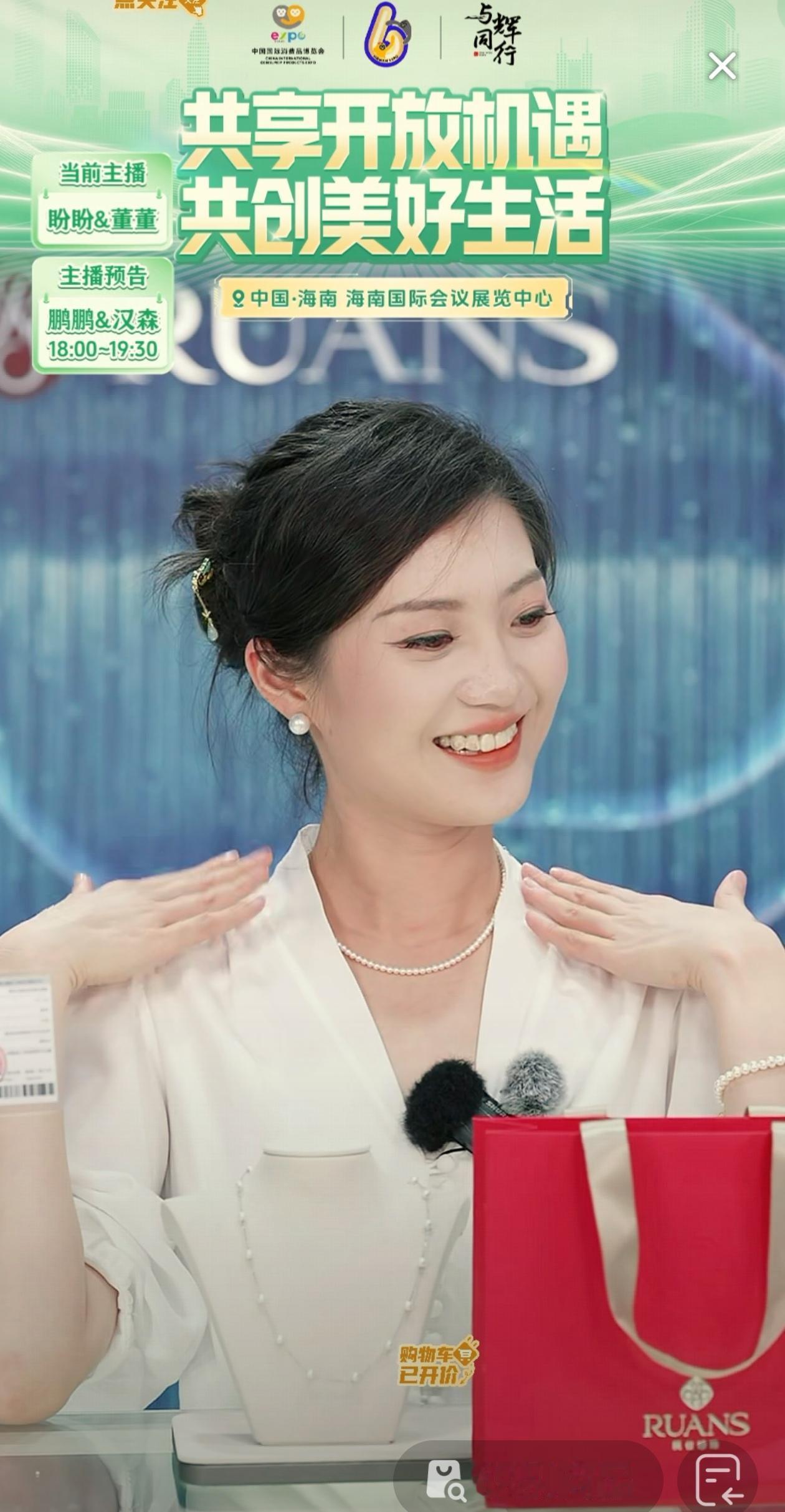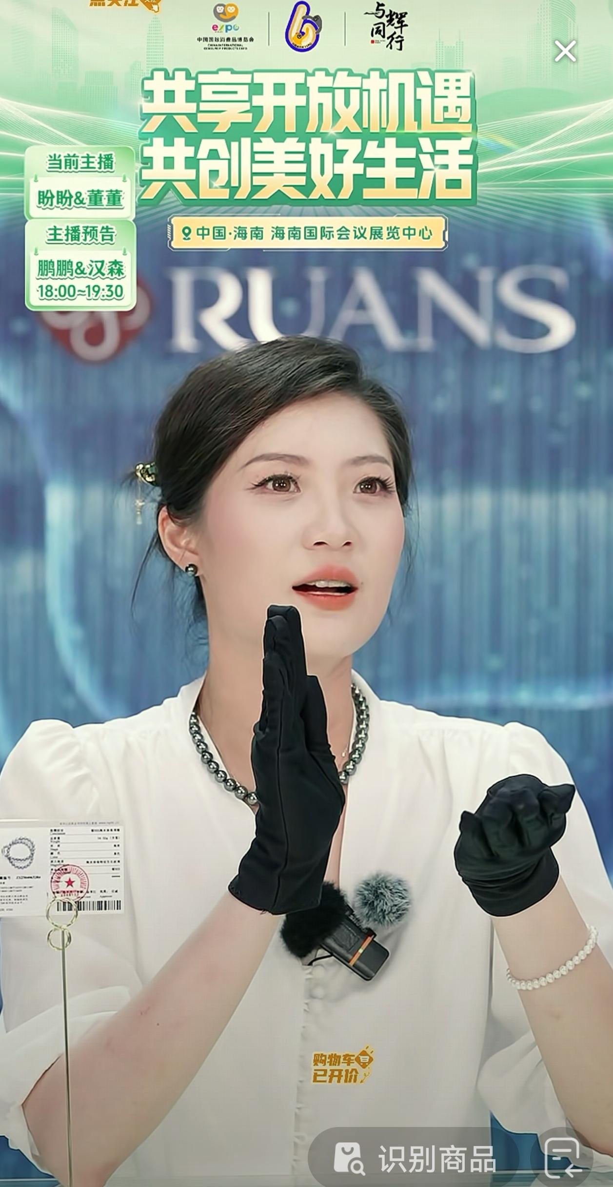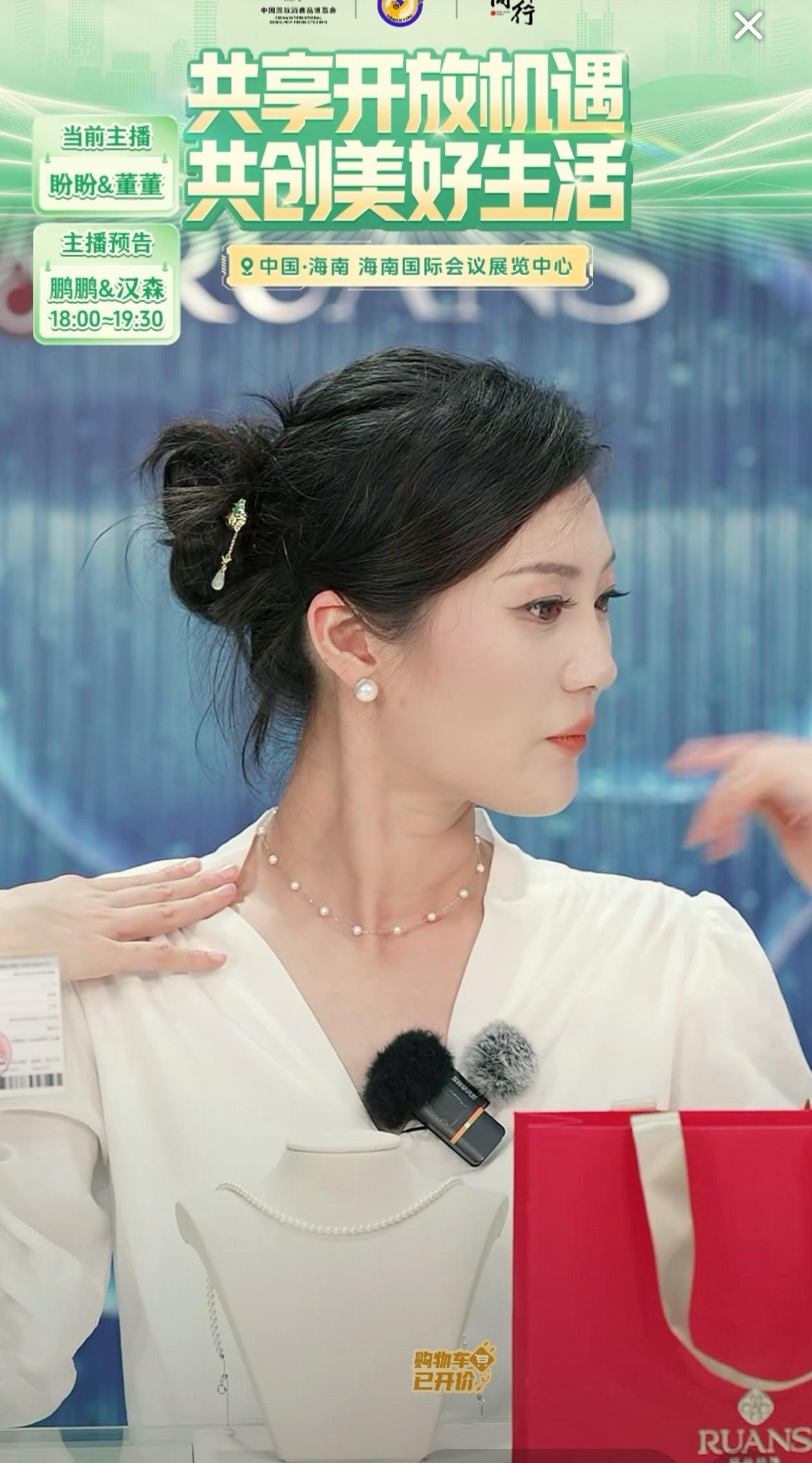 似乎每一次重大的专场都是这对组合做先锋,董董的专业,盼盼的美艳,让人赏心悦目。他们还是一对能有化学反应的cP,董董是与辉同行除了宇辉外唯一敢调侃盼盼的男主播,今天难得见他直言夸盼盼。他说盼盼所戴的珍珠配v领着装,显得更加性感和有女人味,盼盼顿时脸色绯红,不好意思地笑着掩饰内心的尴尬,这女汉子从来不喜欢别人夸她性感。董董还没醒悟,问她为什么笑,她说你的话戳中了我的笑点,其实是戳中了她害羞的内心。