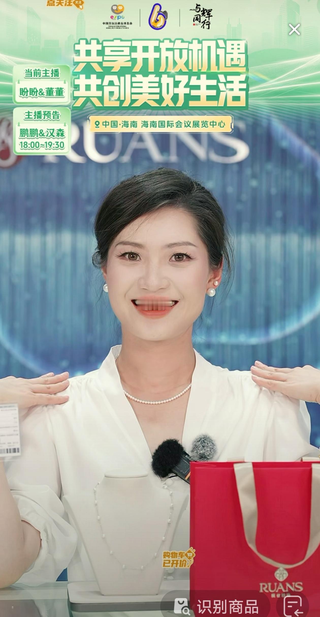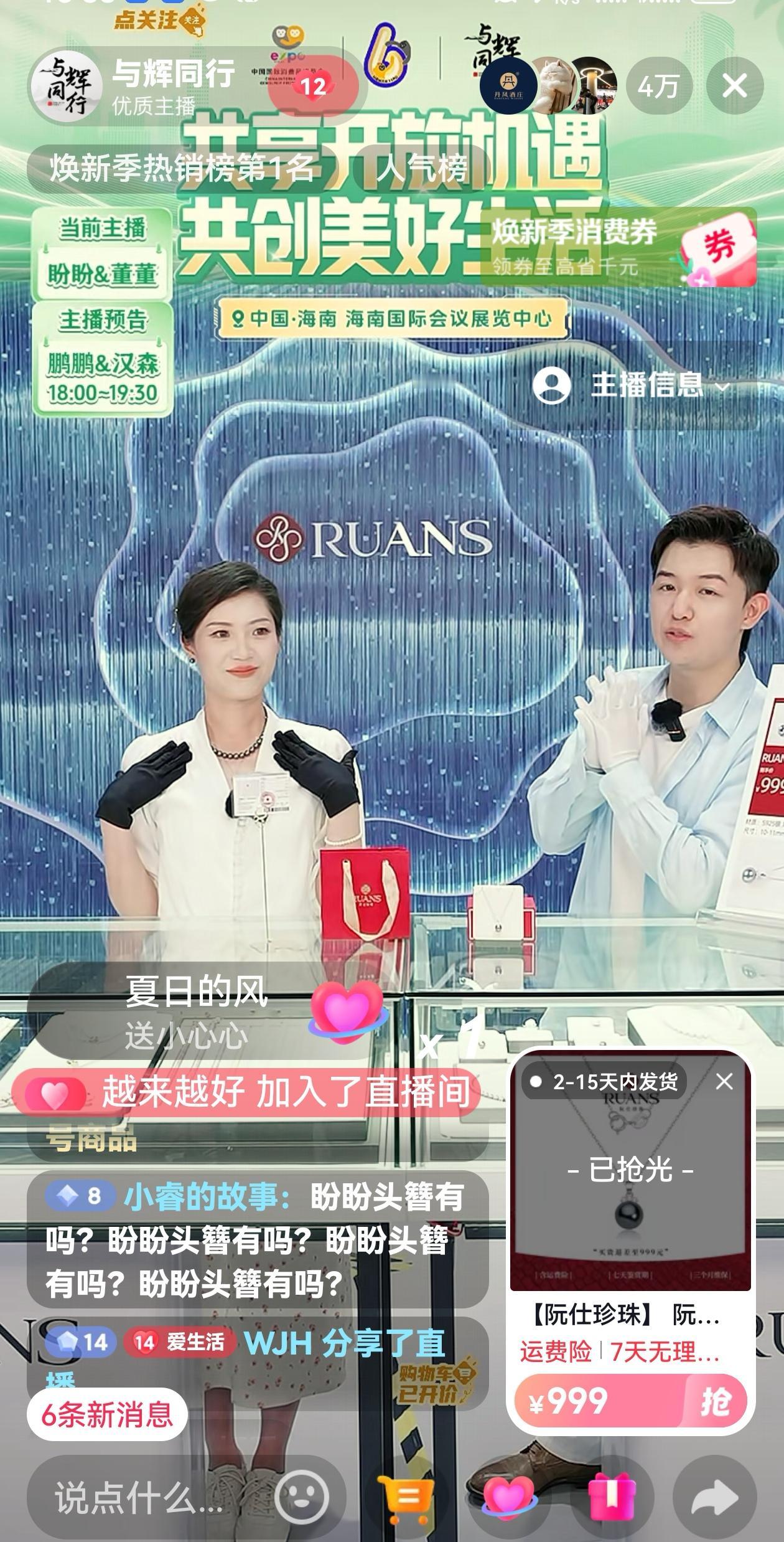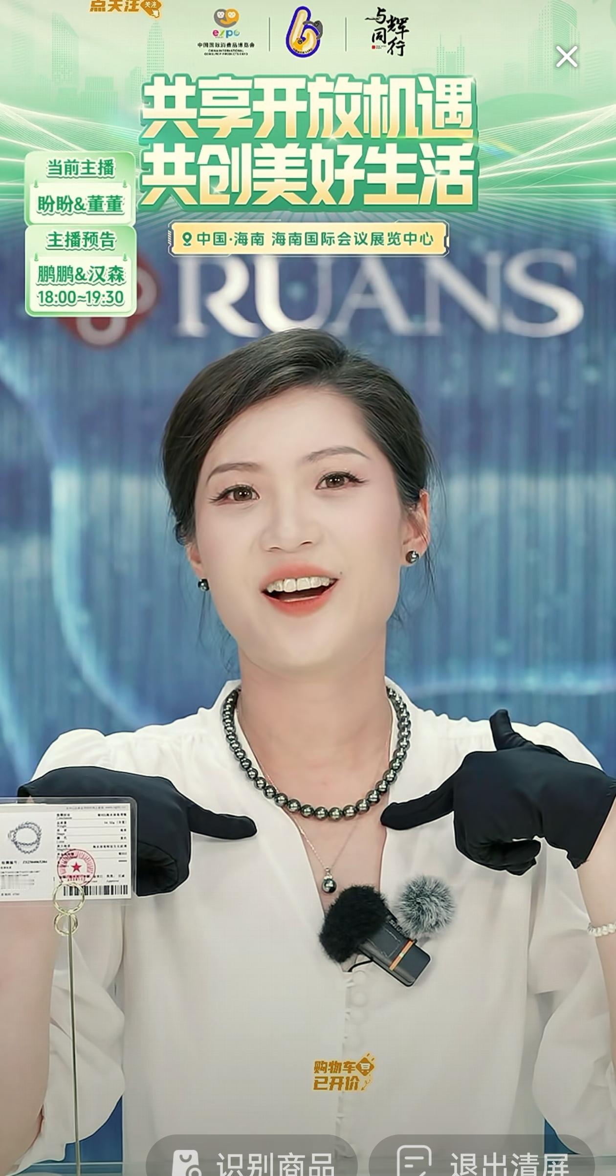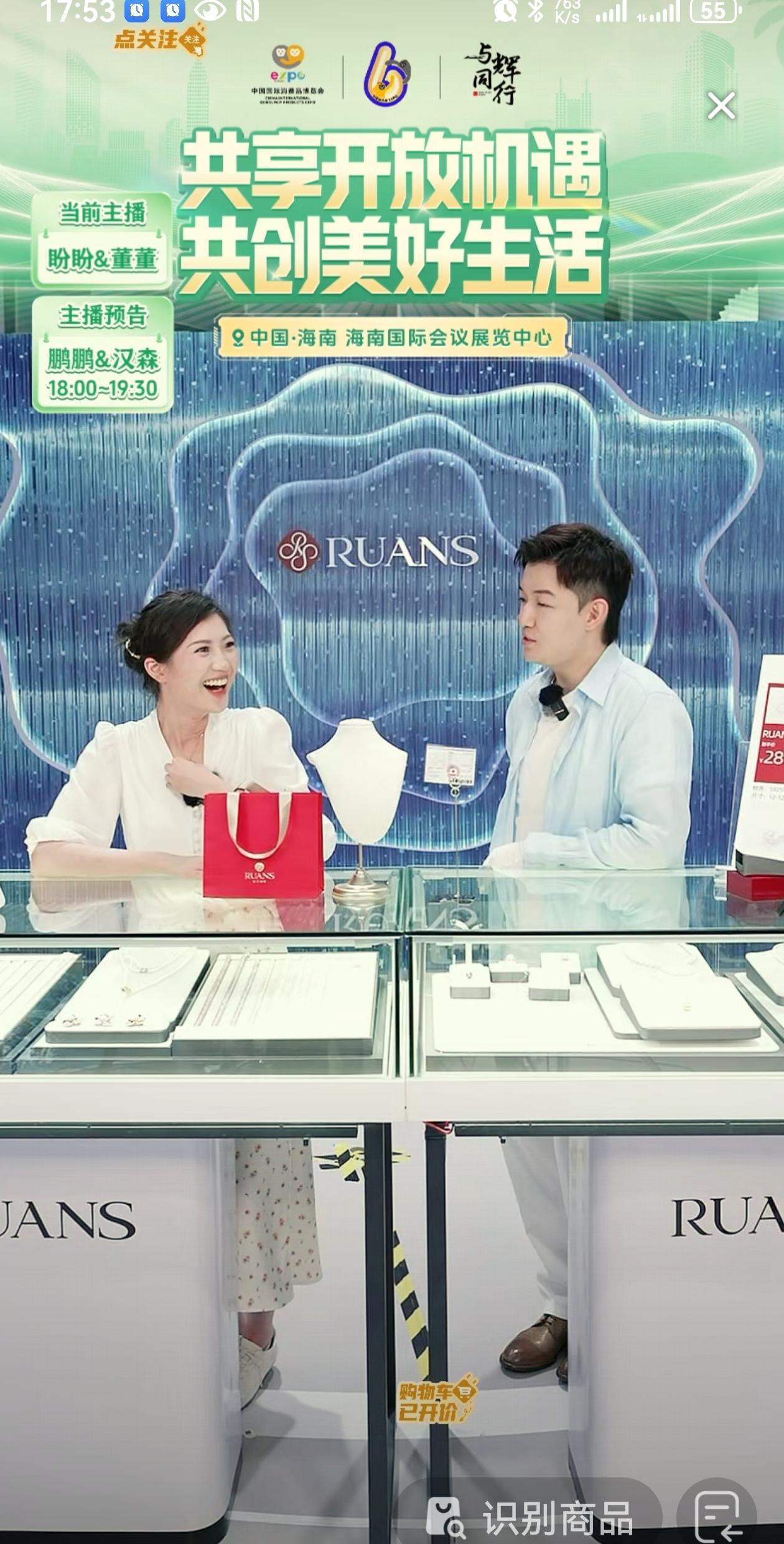 似乎每一次重大的专场都是这对组合做先锋,董董的专业,盼盼的美艳,让人赏心悦目。他们还是一对能有化学反应的cP,董董是与辉同行除了宇辉外唯一敢调侃盼盼的男主播,今天难得见他直言夸盼盼。他说盼盼所戴的珍珠配v领着装,显得更加性感和有女人味,盼盼顿时脸色绯红,不好意思地笑着掩饰内心的尴尬,这女汉子从来不喜欢别人夸她性感。董董还没醒悟,问她为什么笑,她说你的话戳中了我的笑点,其实是戳中了她害羞的内心。