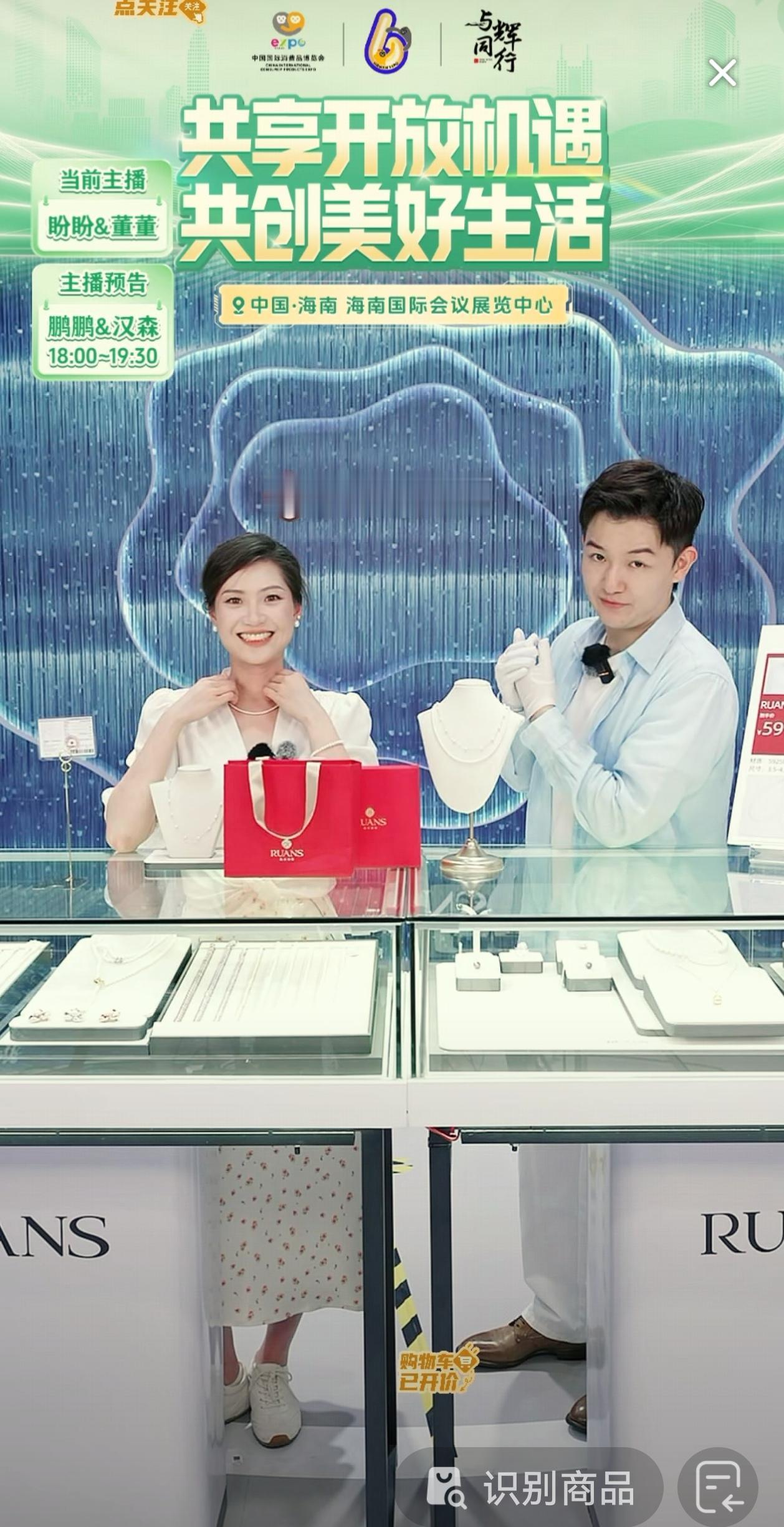 海南国际消费博览会的第一天,董董和盼盼这对金童玉女闪亮登场,月光美人配珍珠,优雅和华贵天人合一,与辉同行的王牌组合实至名归。