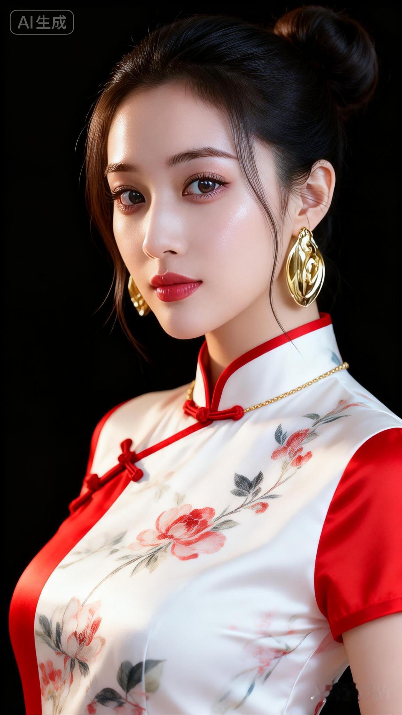 优雅旗袍,红白相间,花枝招展,尽显东方韵味!
