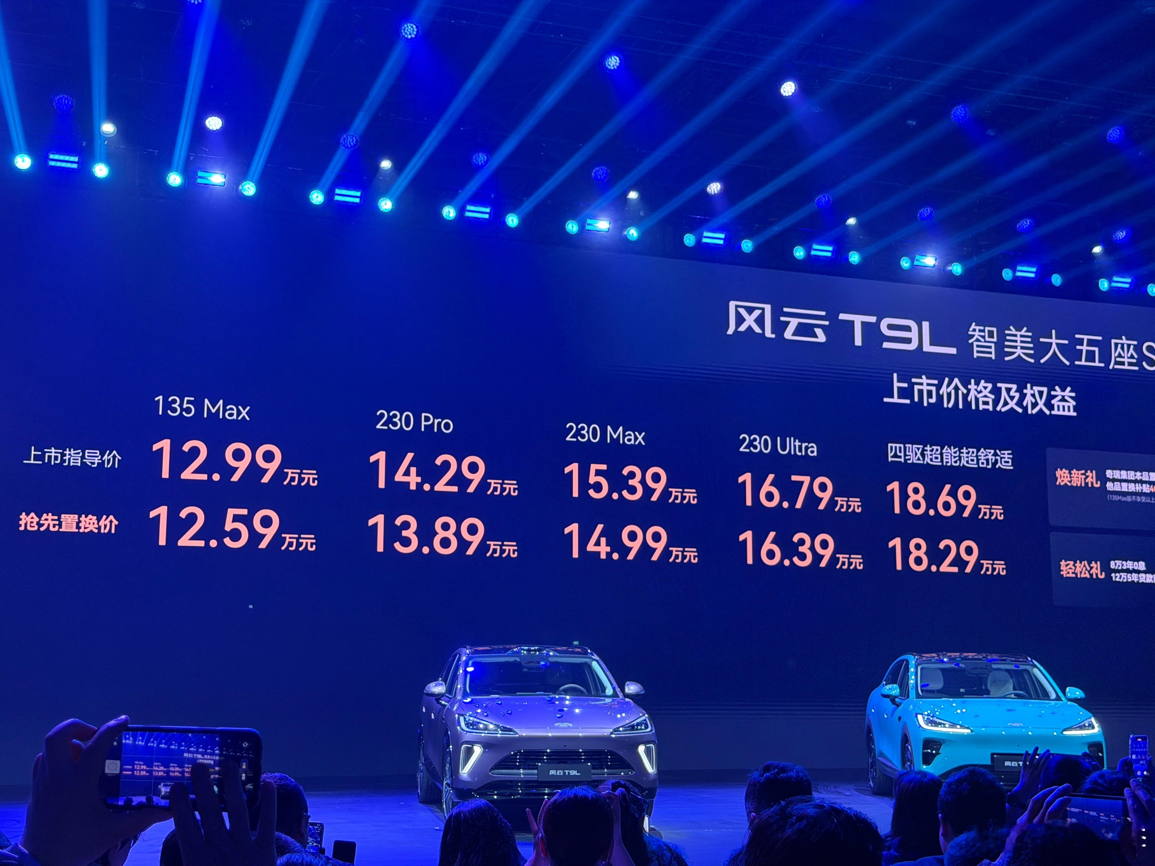 奇瑞风云T9L的上市价格官方指导价12.99万 - 18.69万元抢先置换价12.59万 - 18.29万元智美大五座风云T9L全球上市 重庆·重庆国际博览中心