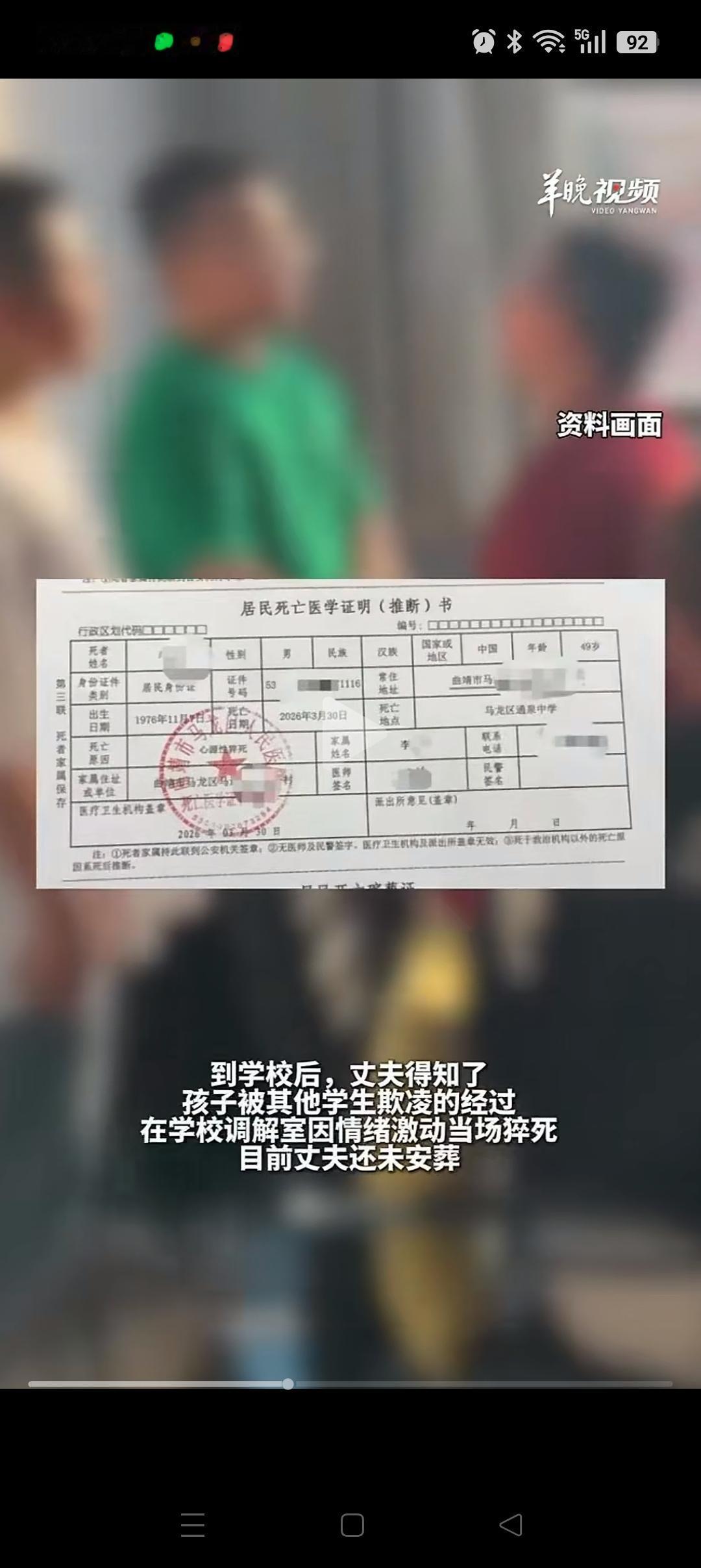 不敢相信,这个孩子该有多伤心[流泪]!云南,一爸爸得知孩子在学校被欺负,于是立刻赶到学校要个说法。不料,由于情绪太激动,居然在调解室里Cu死了。