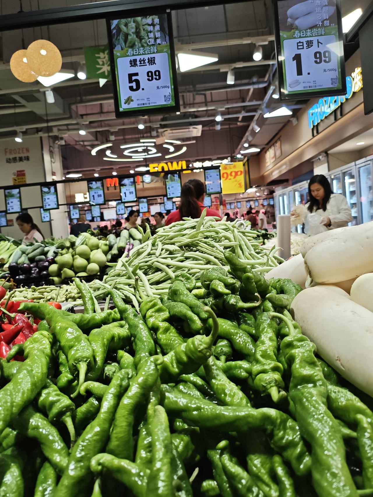 晒出你的本地生活今日继续逛超市,分享一下我们本地菜价:四季豆5.99元1斤,水果萝卜4.99元1斤,冬笋5.99元1斤,小芋头3.99元1斤,泥萝卜2.99元1斤,白萝卜1.99元1斤,螺丝椒5.99元1斤,红尖椒9.99元1斤,青尖椒,泡椒3.99元1斤!