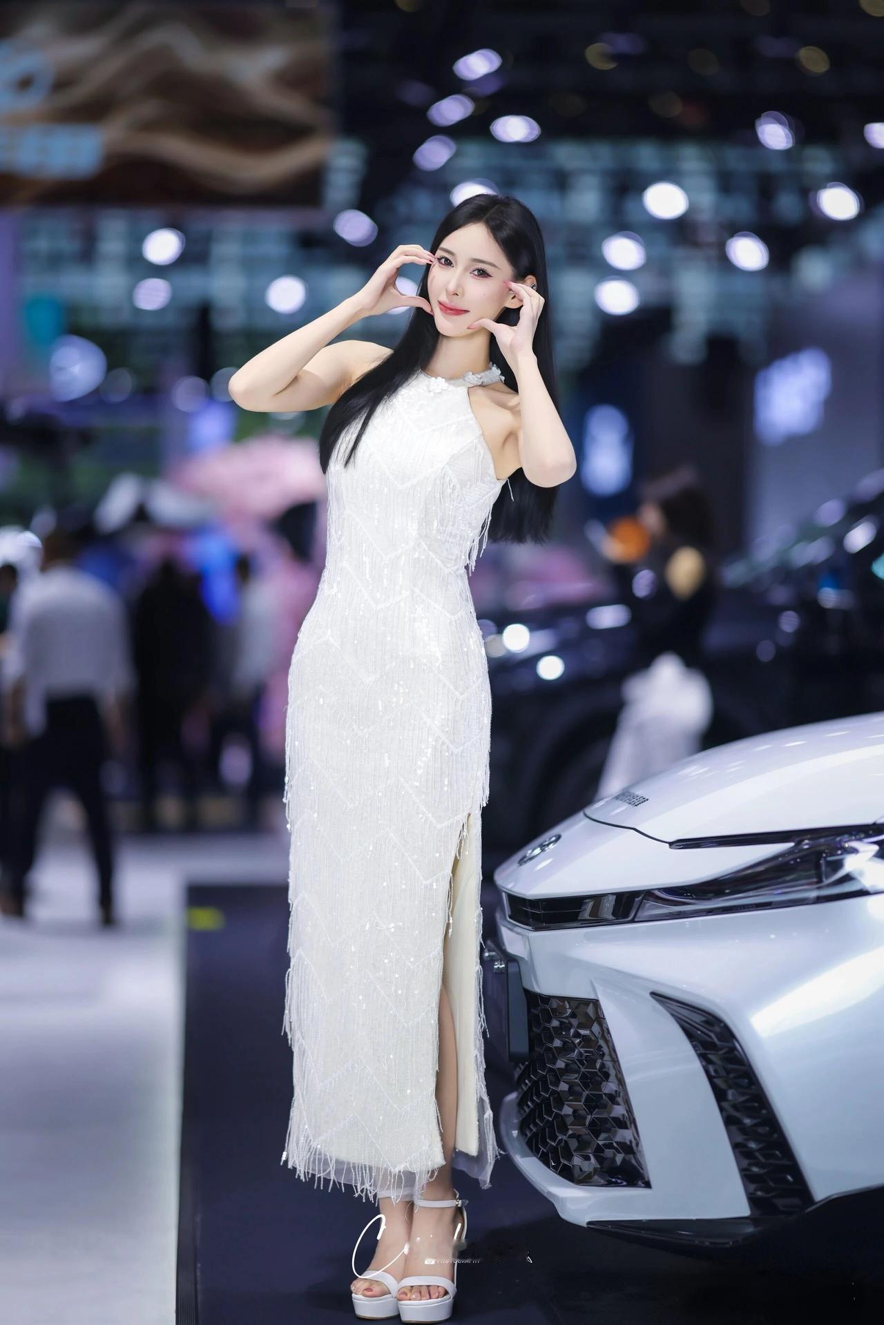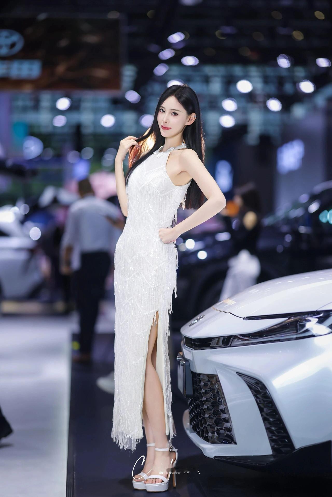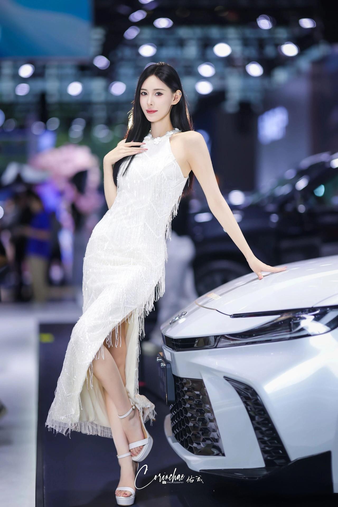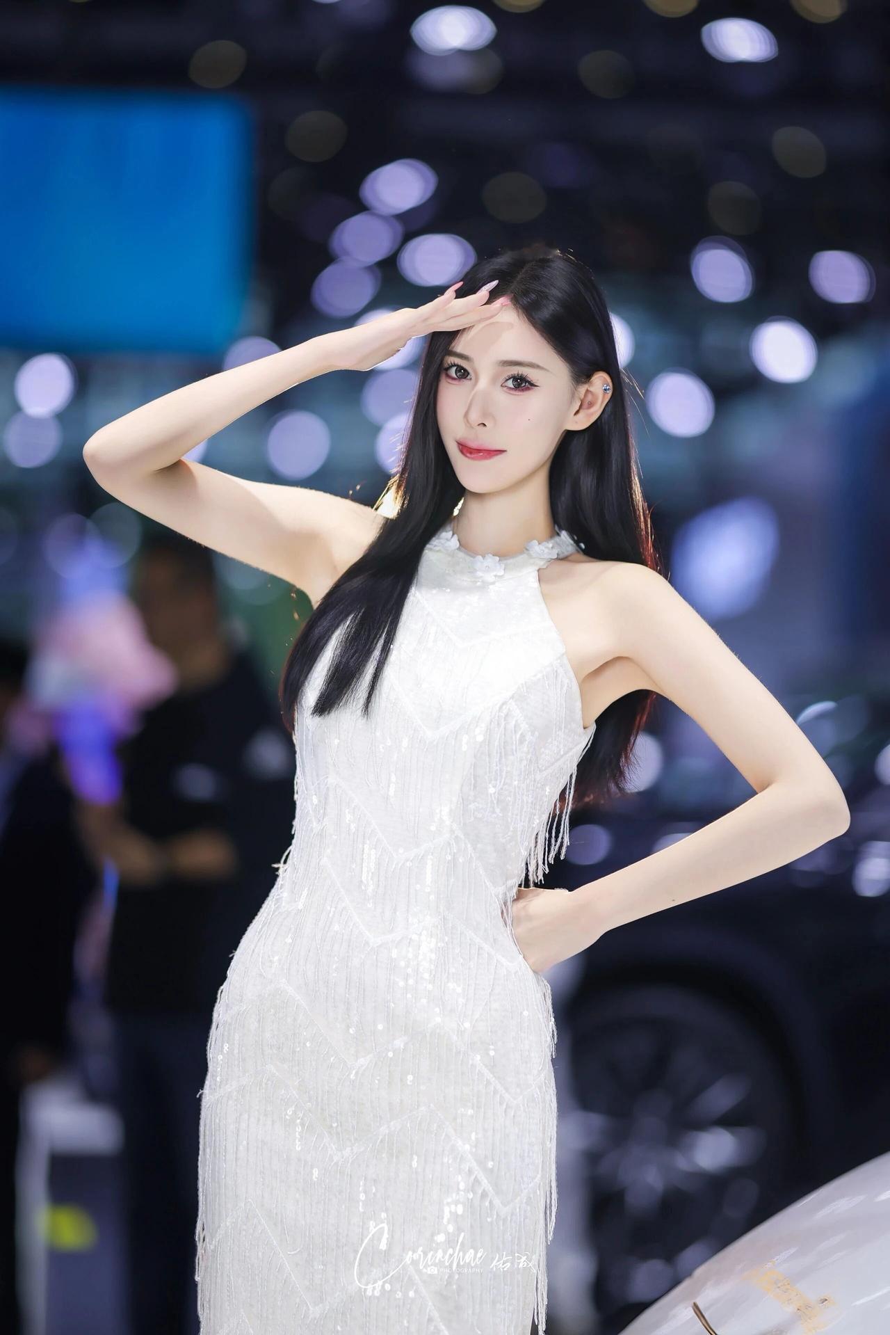 车展柔美的光斑氛围感里,一颦一笑灵动又优雅,清冷贵气又自带迷人御姐气场,站在香车旁又美又耀眼,温柔精致又自带高级性感,镜头感十足。