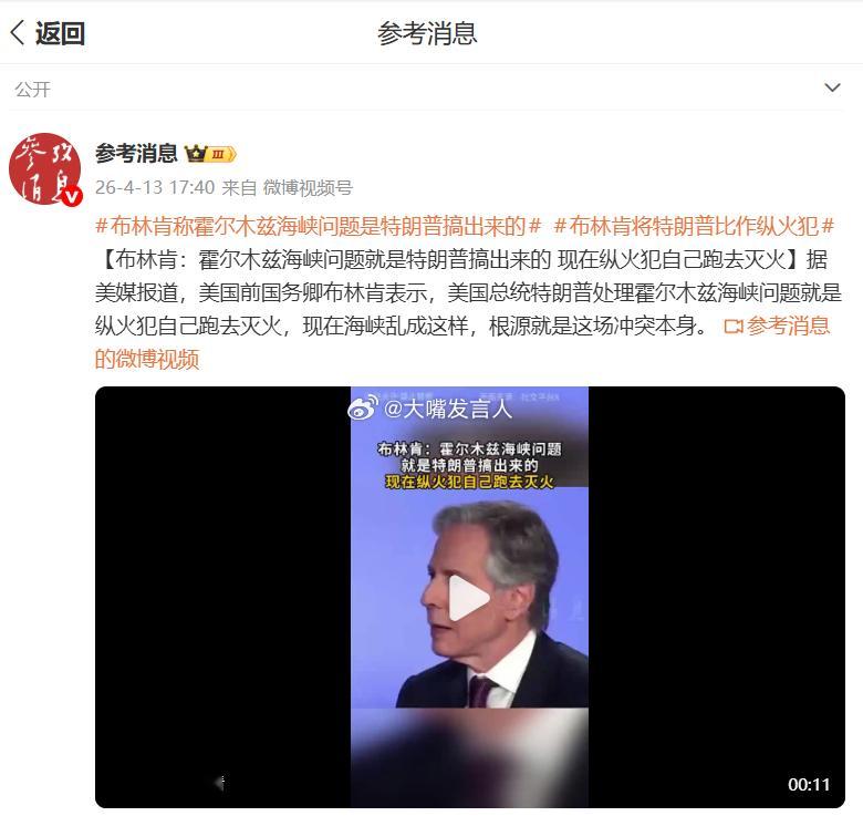 布林肯将特朗普比作纵火犯 “纵火犯自己跑去灭火”?川宝是去灭火吗?他是跑去继续放火呀,同样封锁霍尔木兹海峡,这是给国际油价、给世界经济雪上加霜呀
