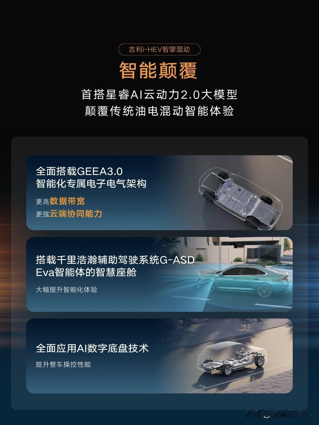 吉利i-HEV智擎混动它把混动技术的竞争焦点从过去的机械结构,推向了“AI算法+系统集成”的新阶段,这意味着中国车企在全球混动市场正在从追赶者真正转变为规则制定者。你就说牛不牛吧!