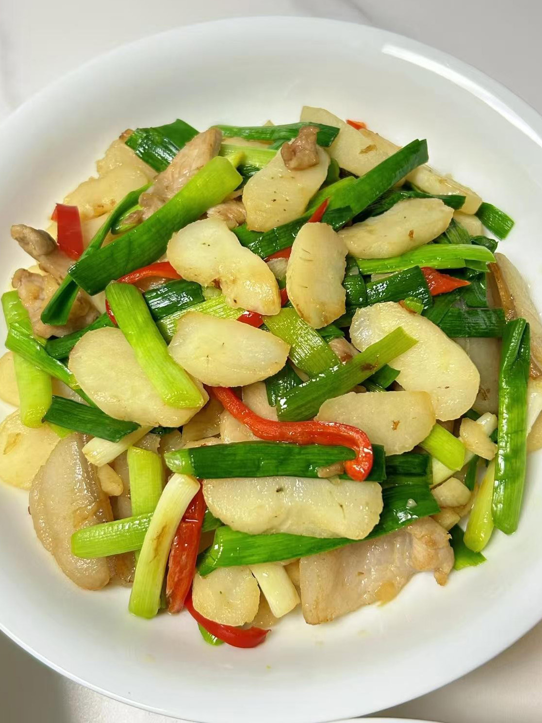 ✅ 蒜苗炒马蹄马蹄(荸荠)清爽甘甜,搭配蒜苗炒,清香解腻,春天吃超舒服!5 分钟就能出锅: