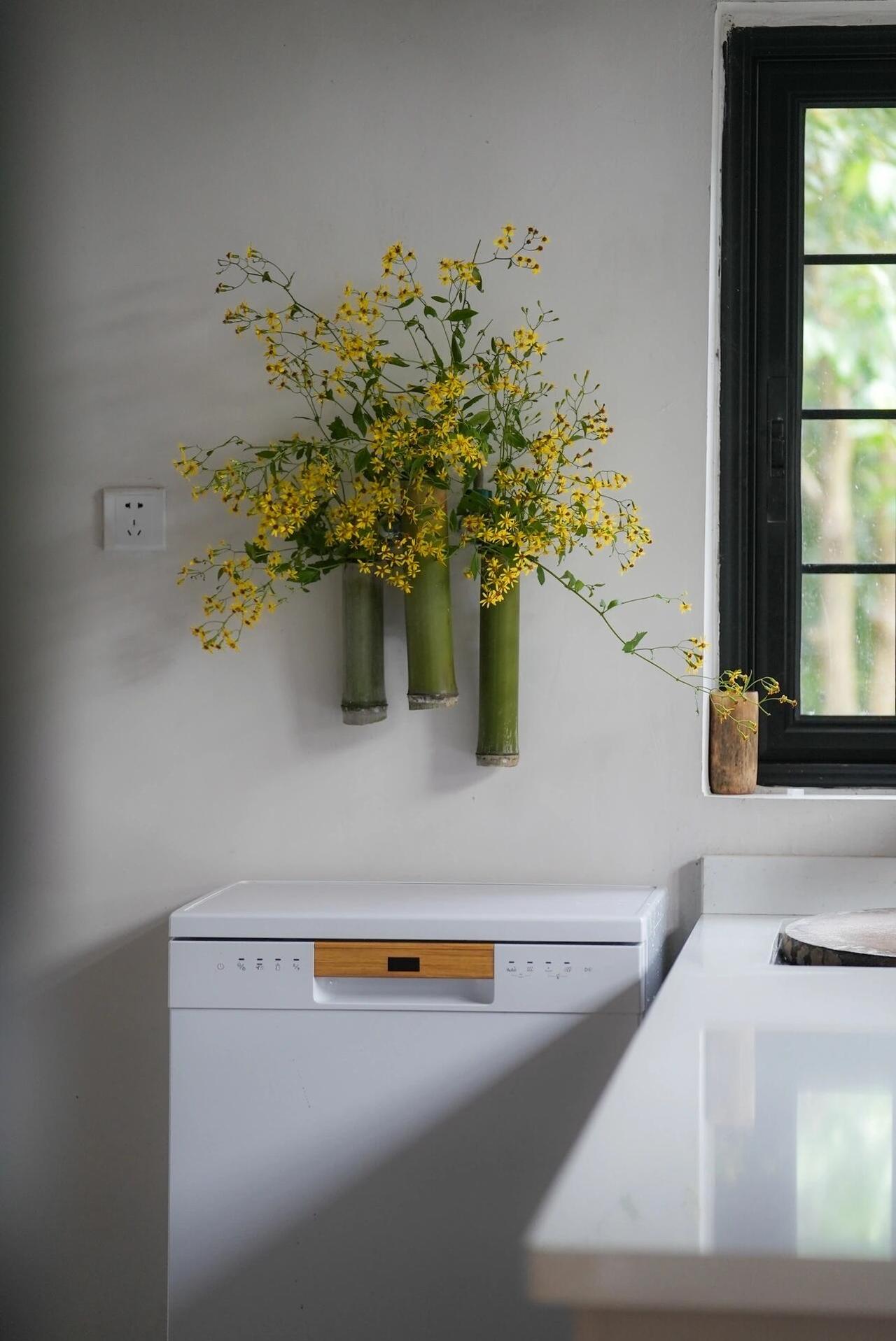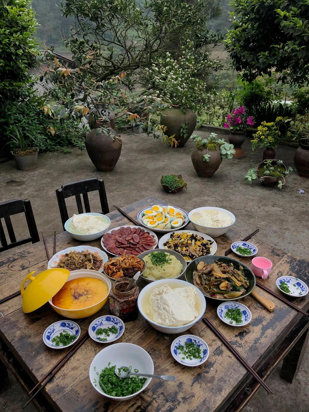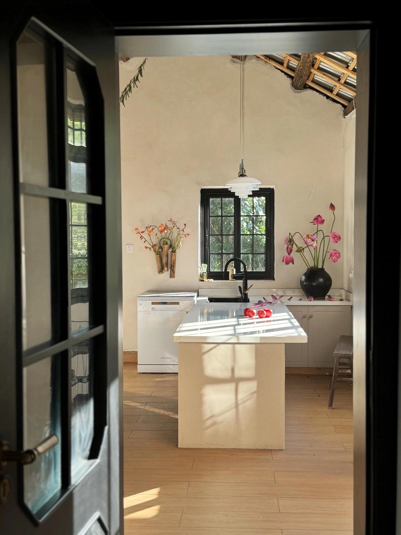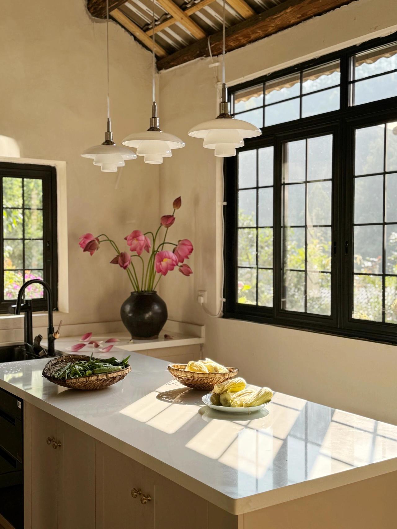 他们先在小菜园旁边开出一片花园,到处捡旧罐子、破陶盆回来种多肉,嫌门口水泥地太秃,干脆砸掉,砌成花池,又拆掉土灶房的一面墙,原本又黑又小的厨房一下子亮堂了。
