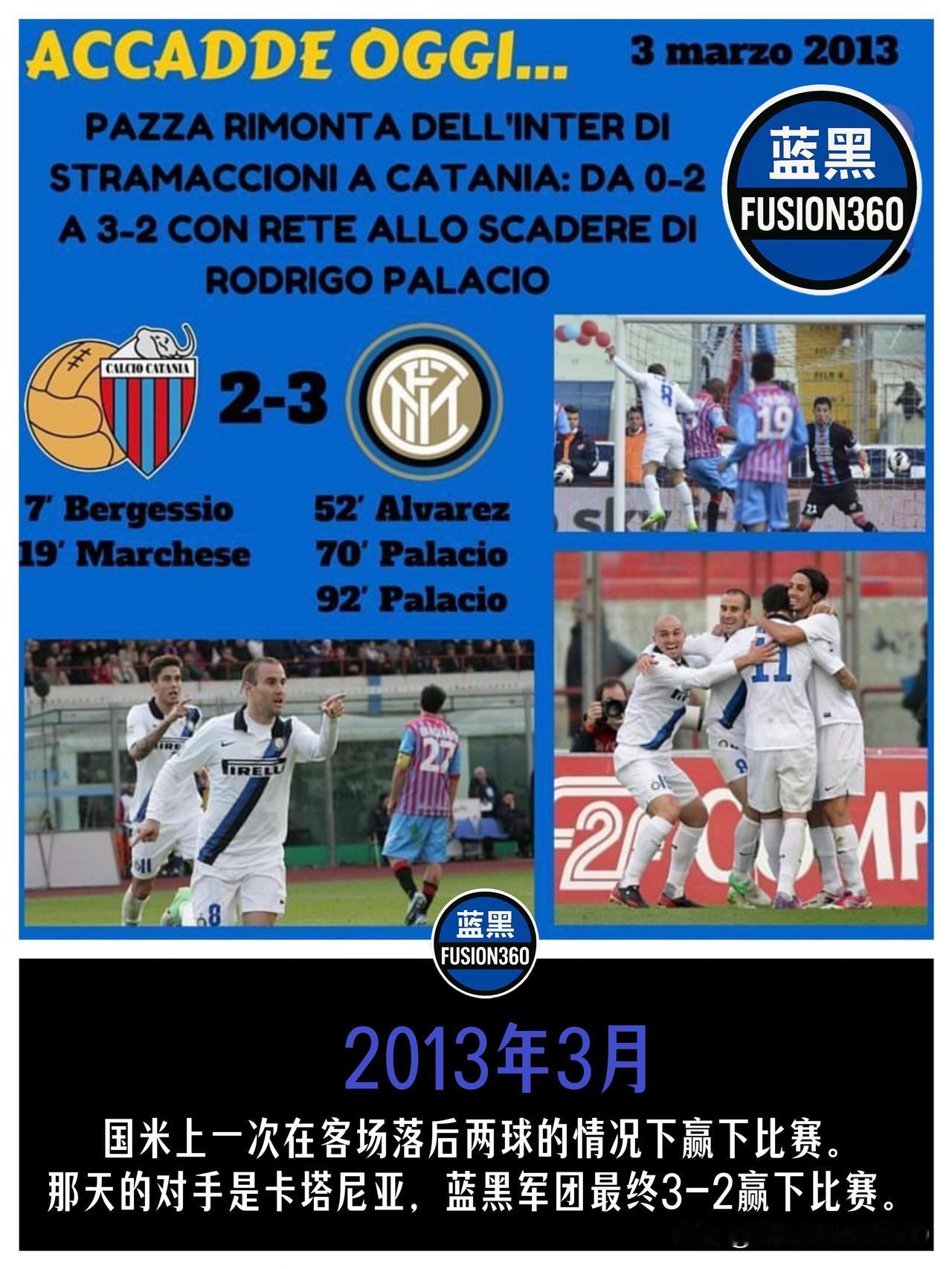 这波客场连扳四球的大逆转,直接把大伙的记忆拉回了13年前。当时是2013年3月对阵卡塔尼亚,咱们半场就被人灌了两个。
