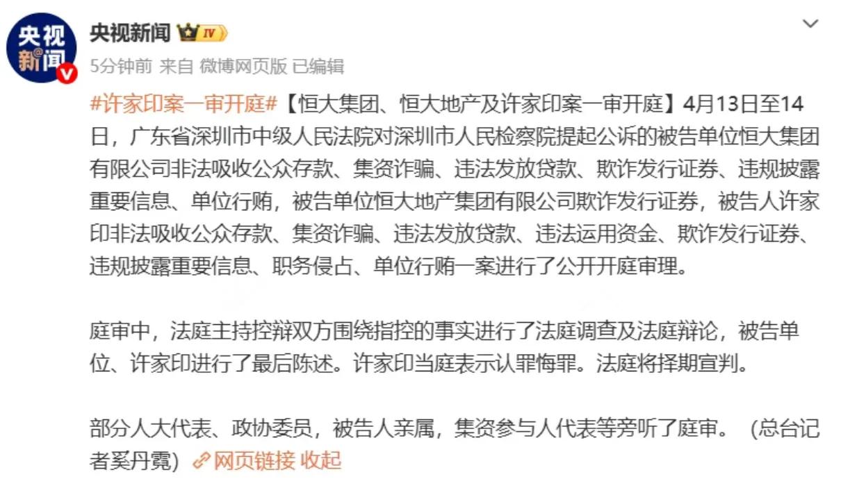 在沦为阶下囚两年半后,恒大许家印终于迎来终极审判。就在刚刚,深圳中院对恒大集团、恒大地产和许家印等系列案件公开审理,这一天至少百万受害人等的太久。许家印当庭表态认罪悔罪,法院择日宣判。