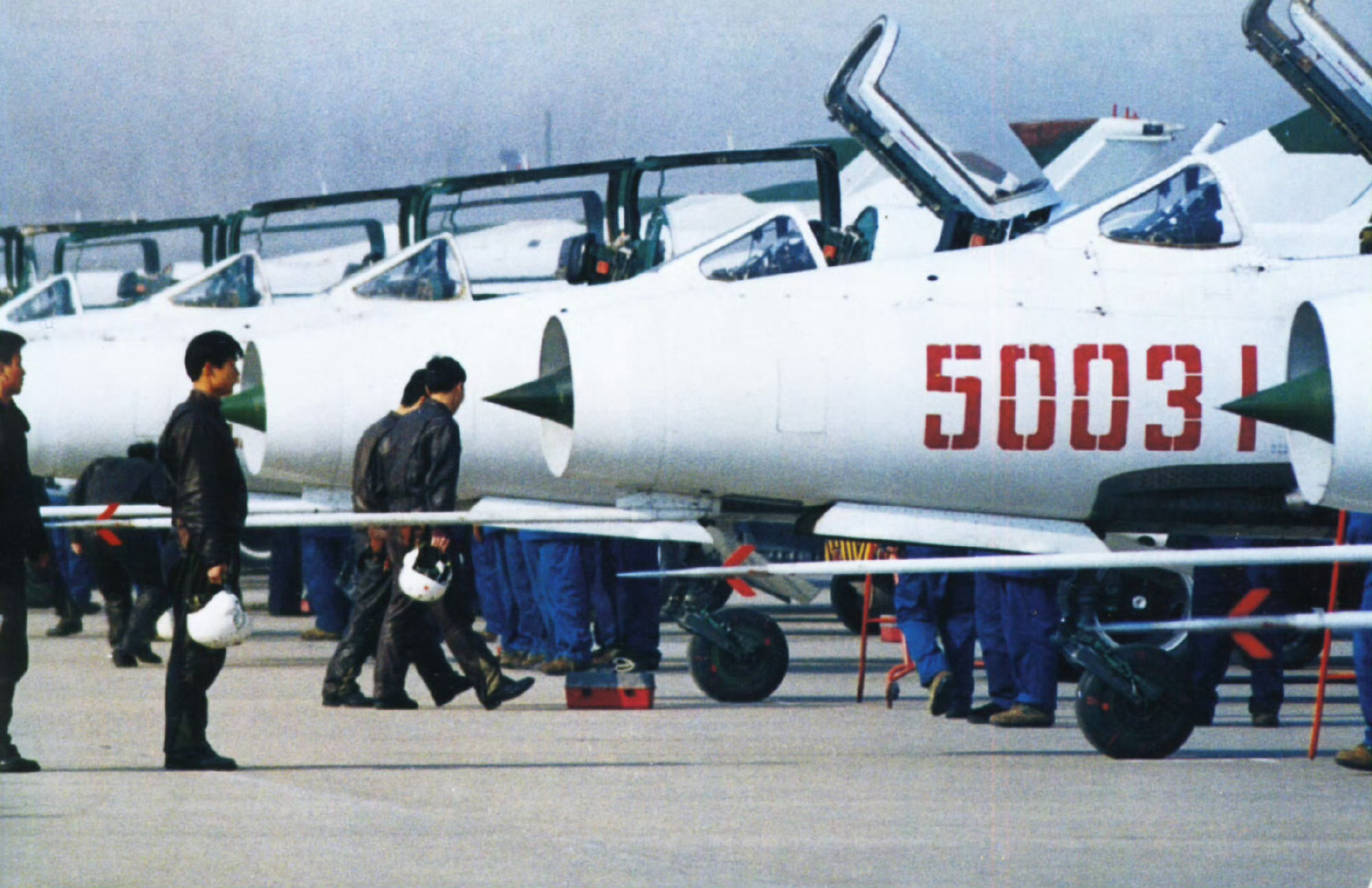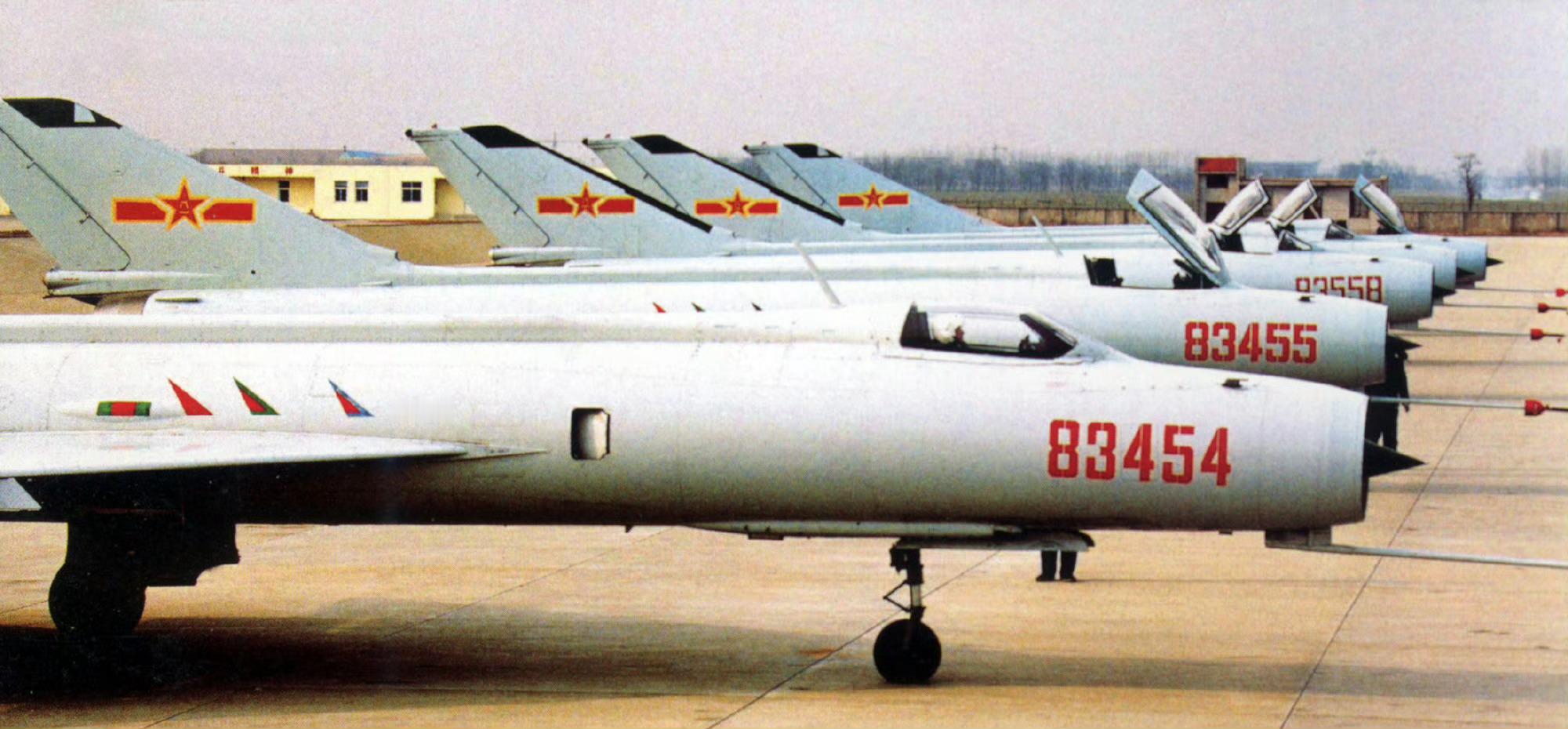 你能想象吗,一直到1995年左右,图中这些机头进气的老家伙还是我国主力的战斗机。