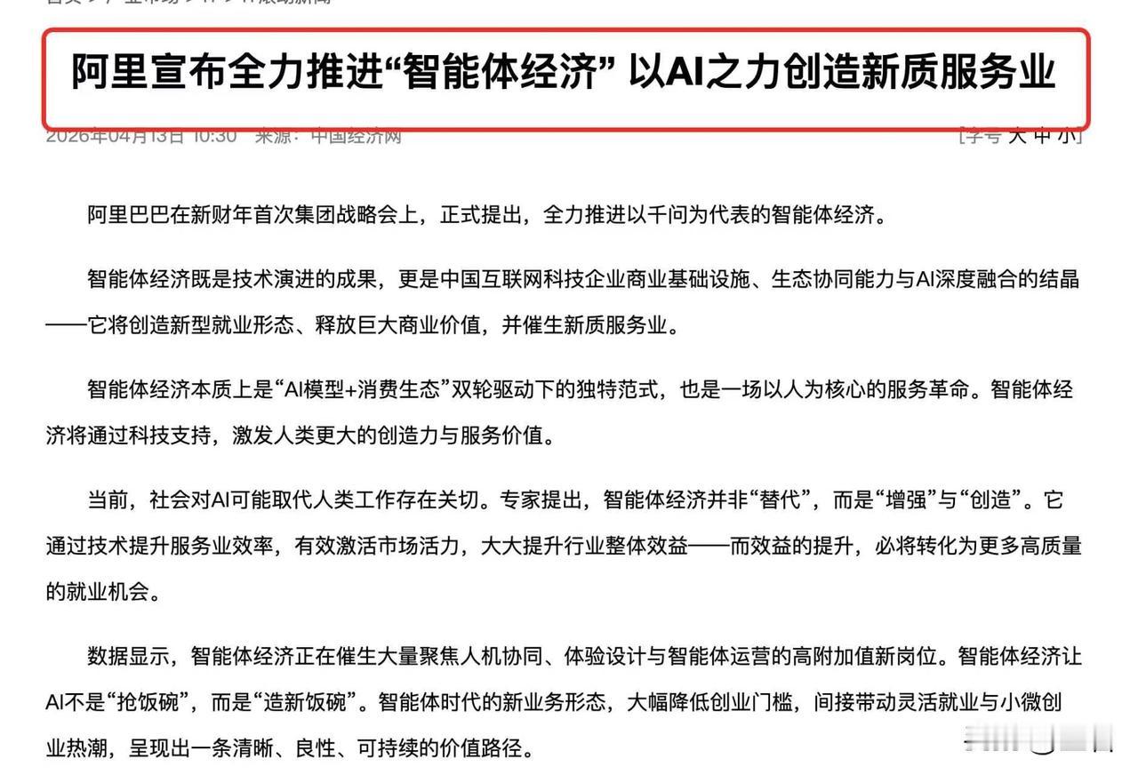 AI发展方向正式确定!阿里首提智能体经济,AI发展进入新阶段!