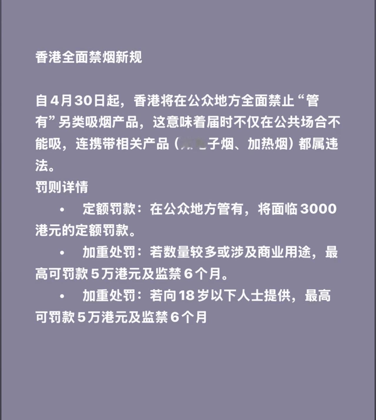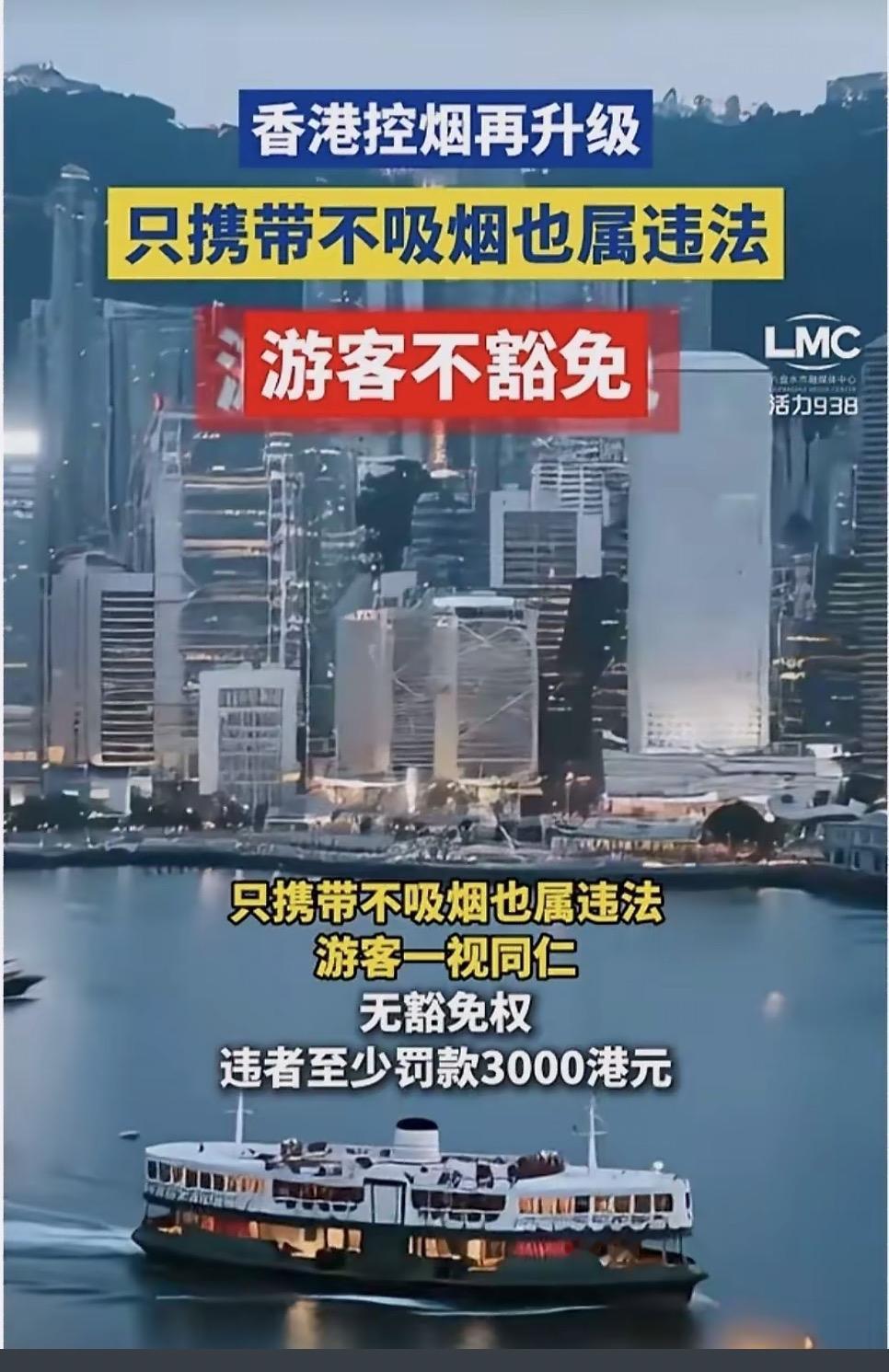 香港最严控烟令来了!携带电子烟上街就罚3000港元,最高罚款5万港元及监禁6个月,不仅电子烟,草本烟、卷烟等全品类烟草制品都被全面管控,公共场所、街道等户外区域一律禁烟,这波“零容忍”操作直接引爆全网讨论。