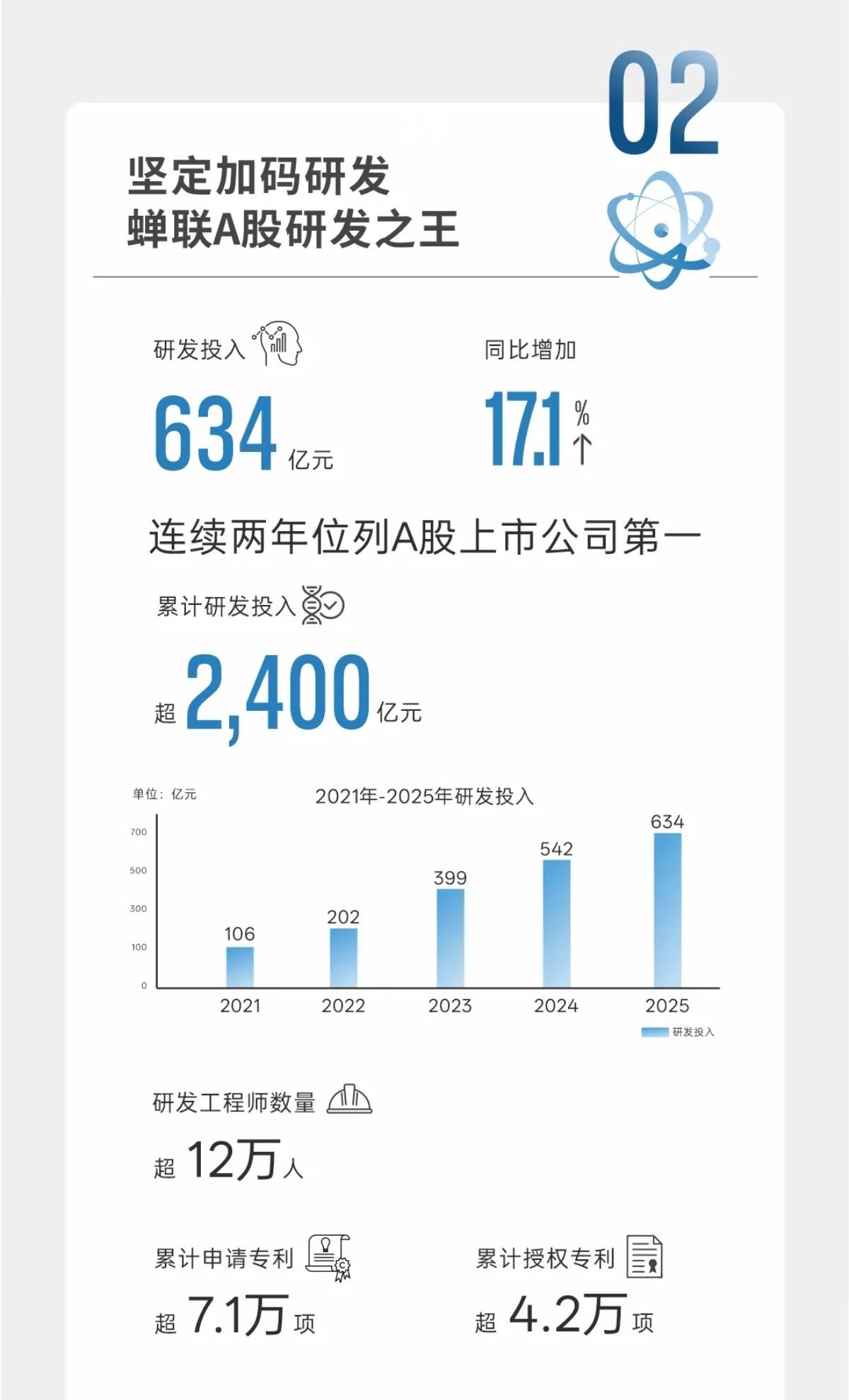2025年比亚迪净利润326亿,研发投入634亿元,合计960亿。