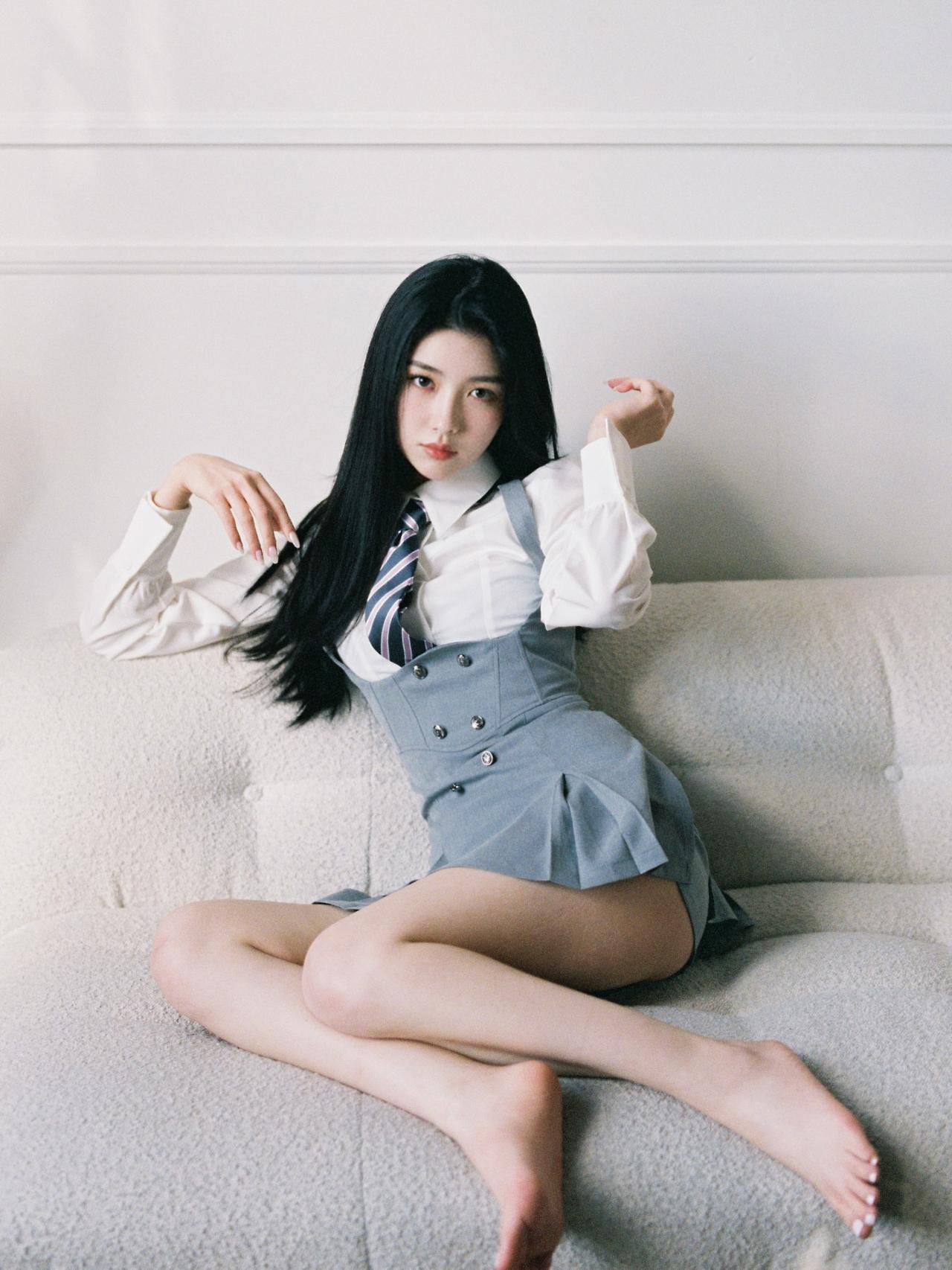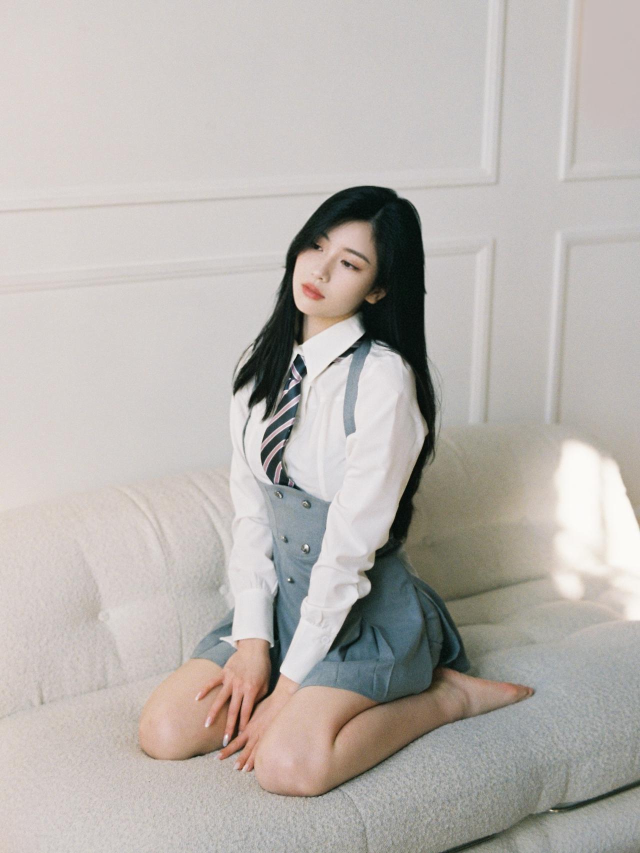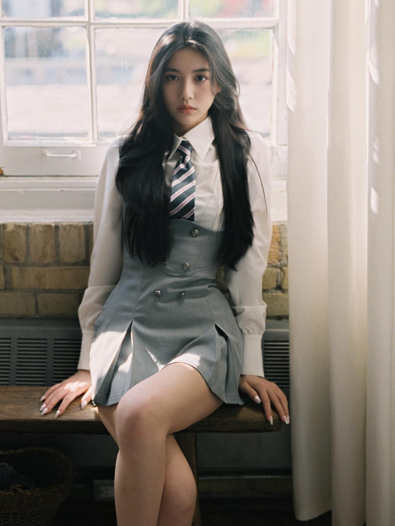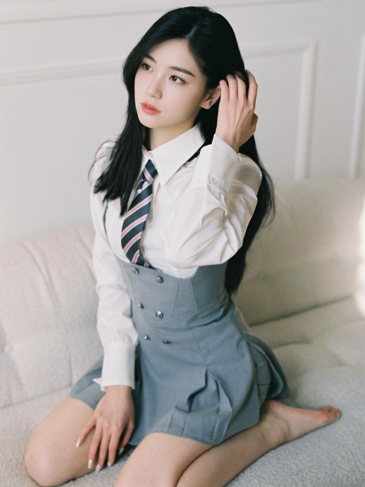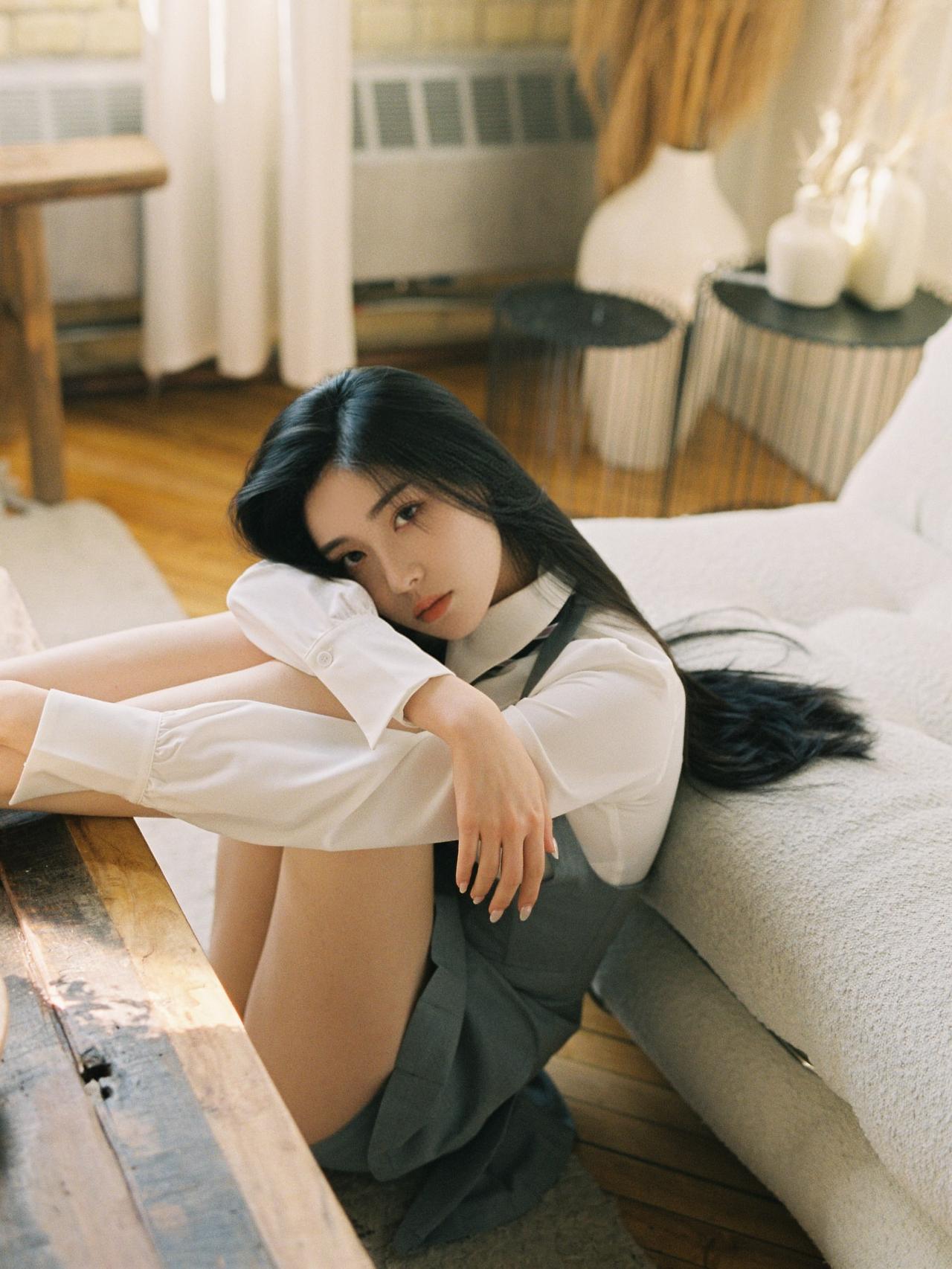 沉思的少女,白衬衫与灰色裙的优雅碰撞,静谧时光中的温柔瞬间。如何穿搭出清爽感呢?