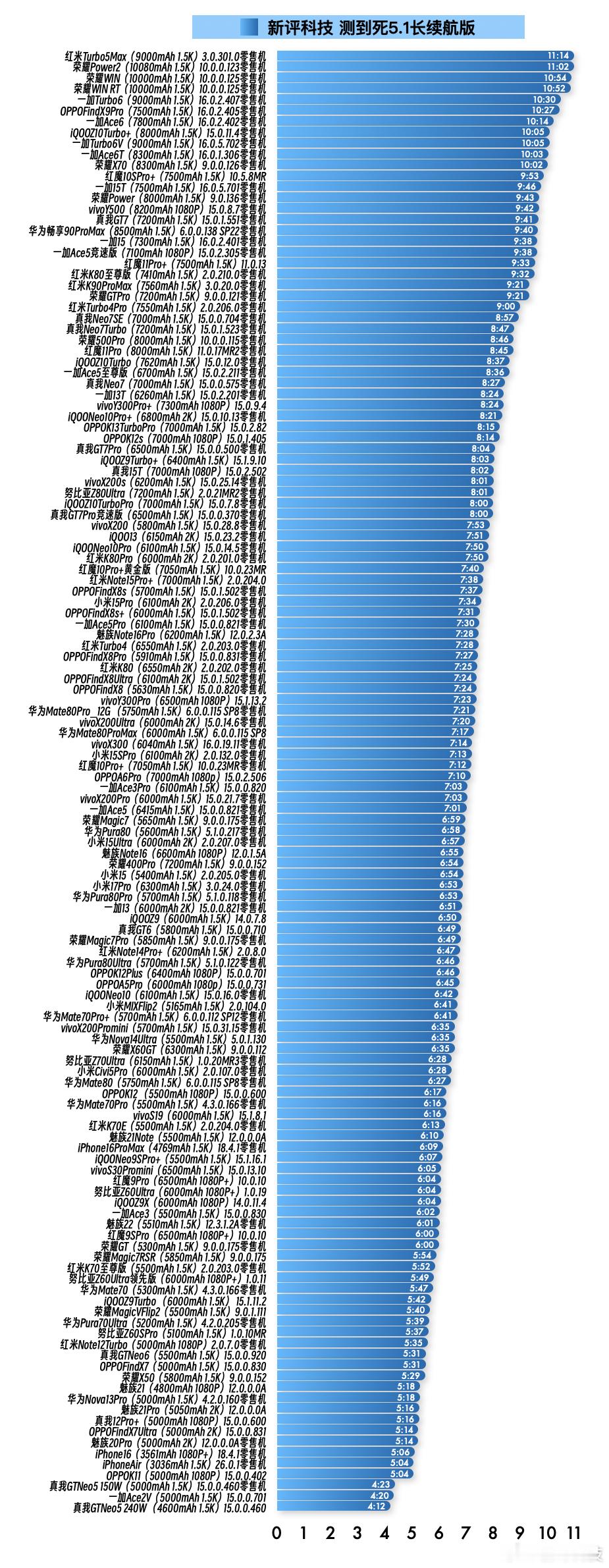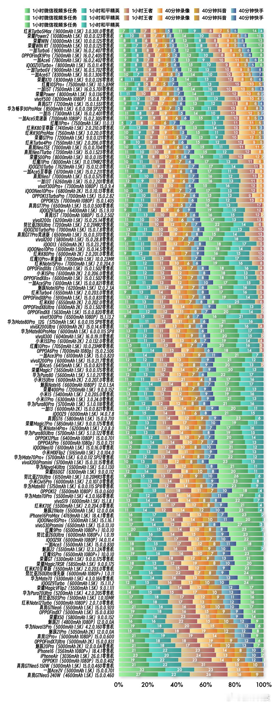 ① 红米Turbo5Max零售机 3.0.301.0版本总续航时间11小时14分钟,最新排名第1名