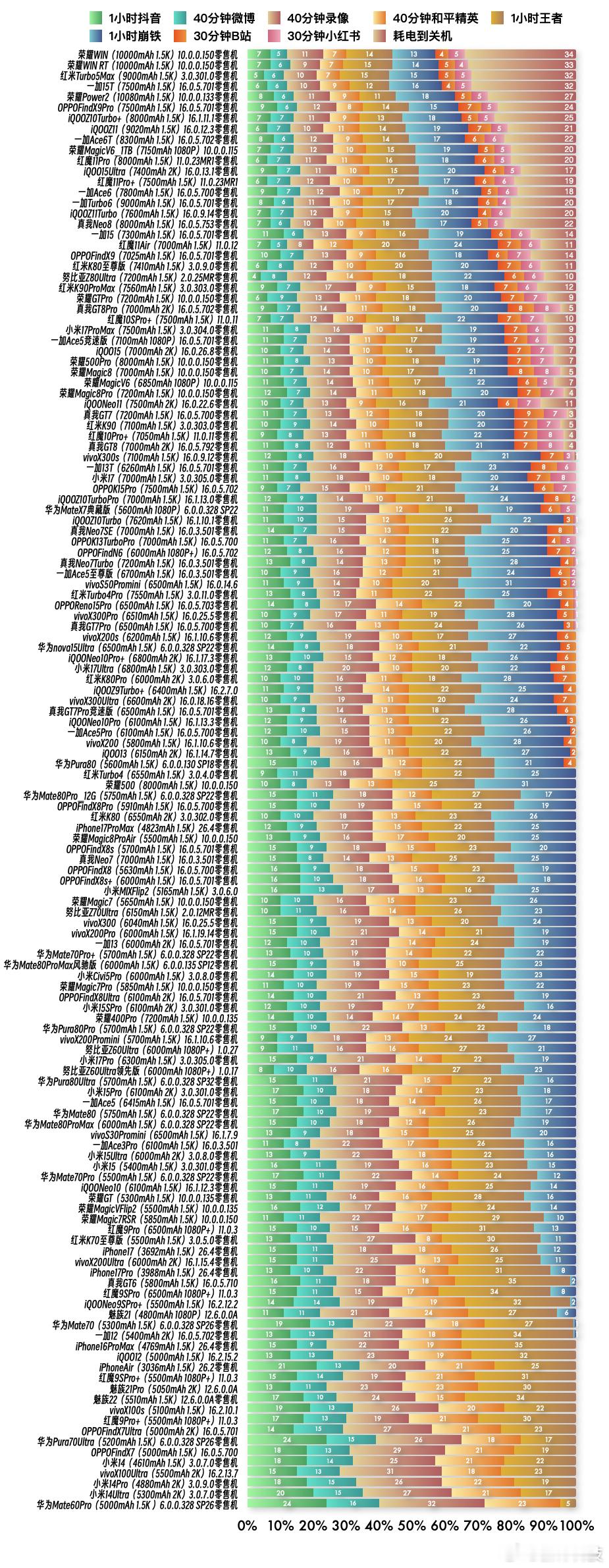 『6.0标准续航榜单』复测38台手机续航成绩