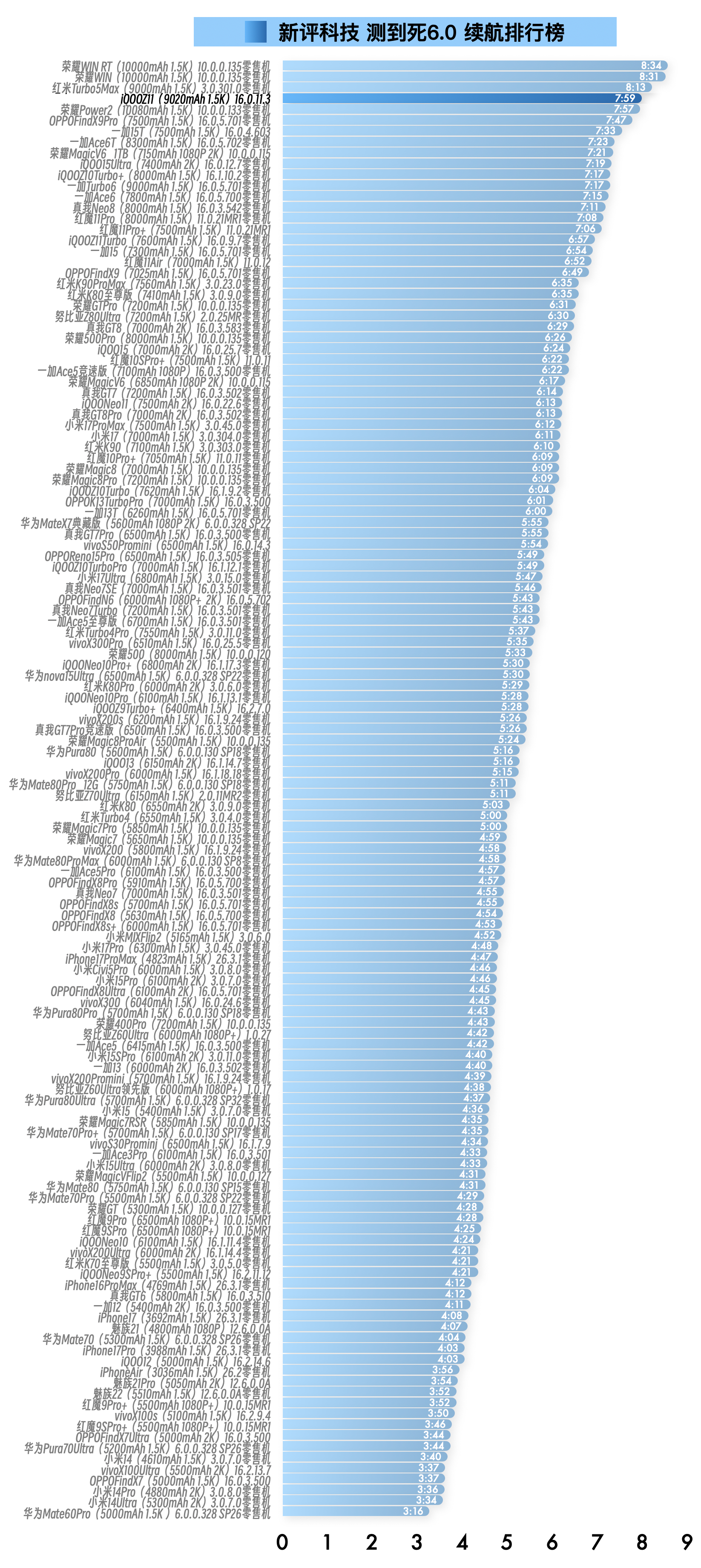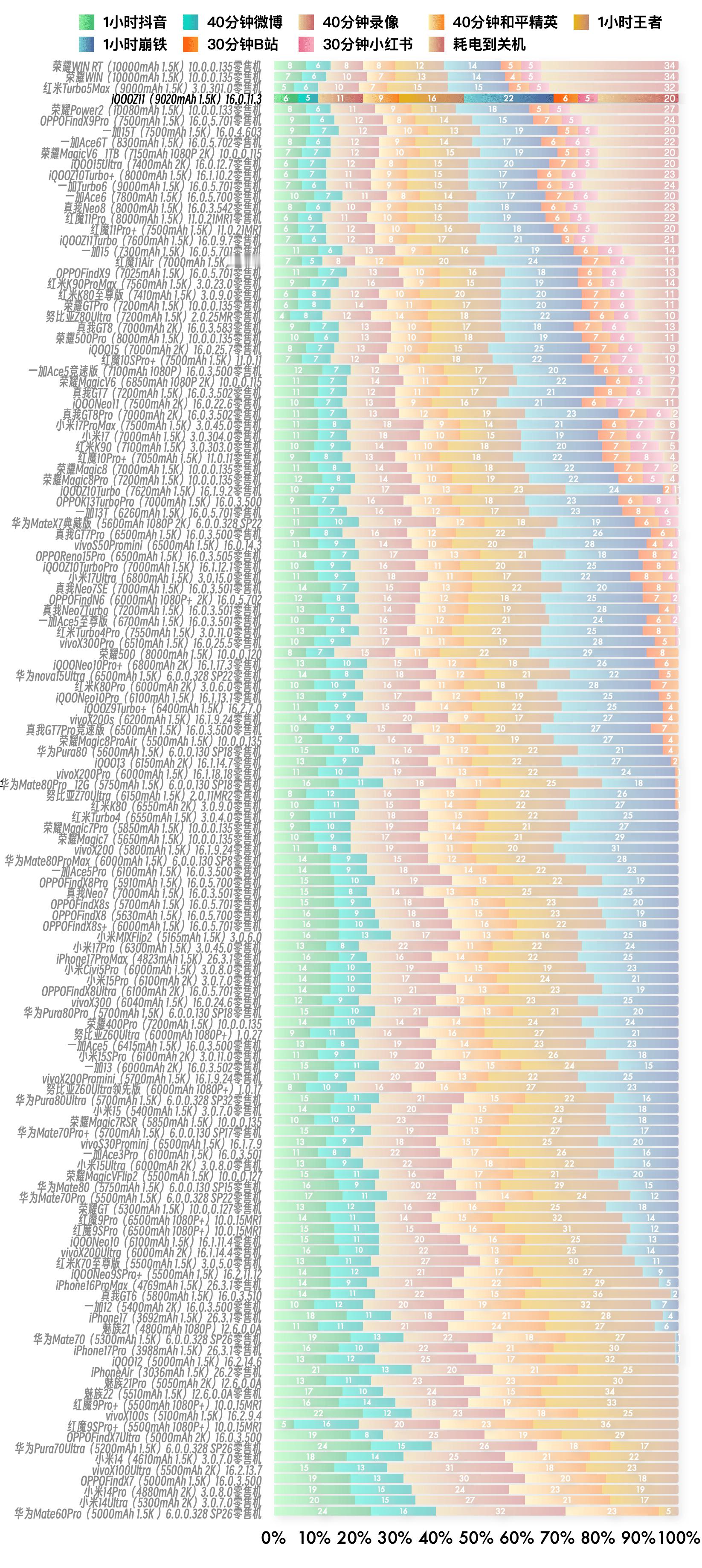 新评科技续航排行榜 iQOO Z11续航成绩公布:iQOO Z11搭载蓝厂史上最大的9020mAh超薄蓝海电池,第四代硅负极技术,16%硅含量,搭载了165Hz超高刷屏幕,那么这台手机实际续航成绩如何呢?