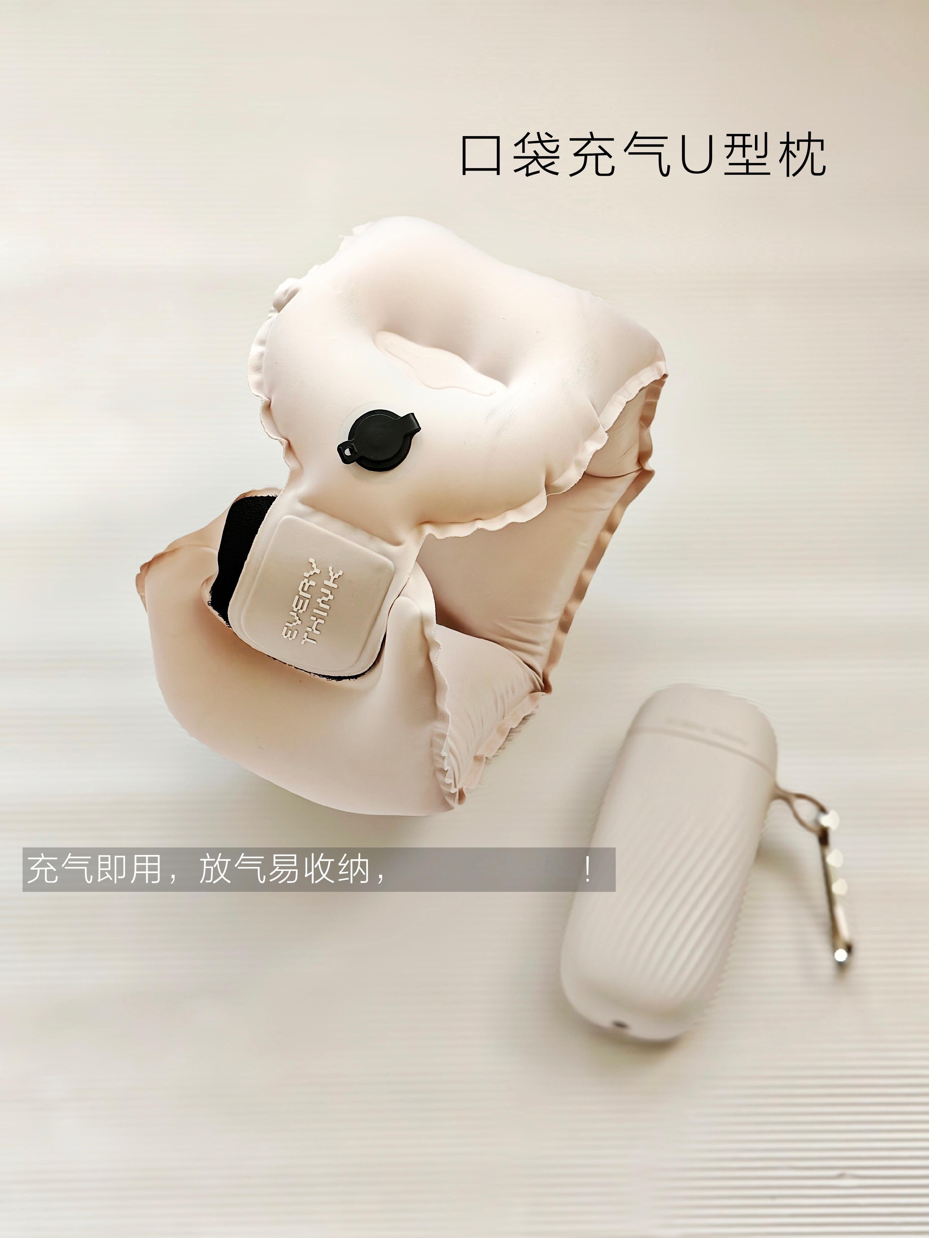 ● 口袋充气U型枕短途出行神器!充气稳托脖子,放气秒变掌心大小,塞包里不占地,轻便又实用!