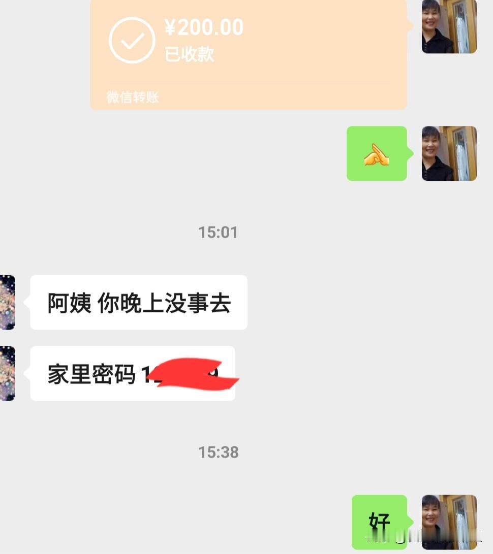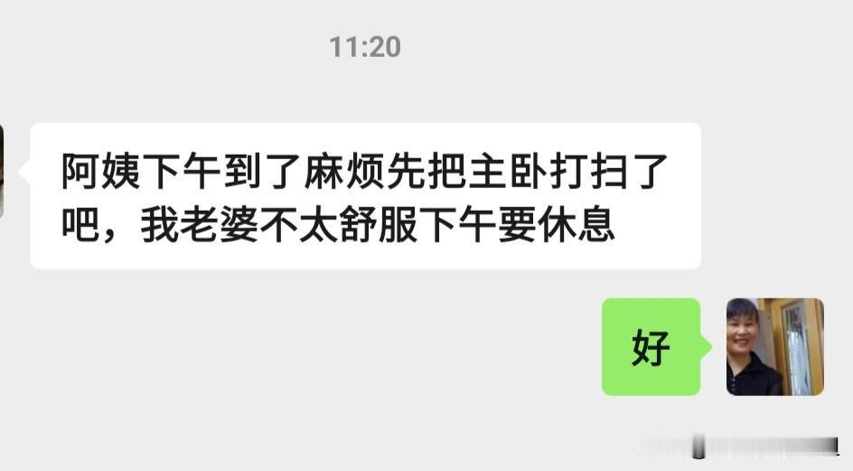 家政阿姨的一天,入账580,下午的客户早早发来消息,让我先收拾主卧。