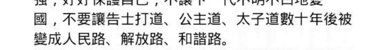 不希望香港的“太子道、公主道”变成他生长的地方的“解放路、人民路”。