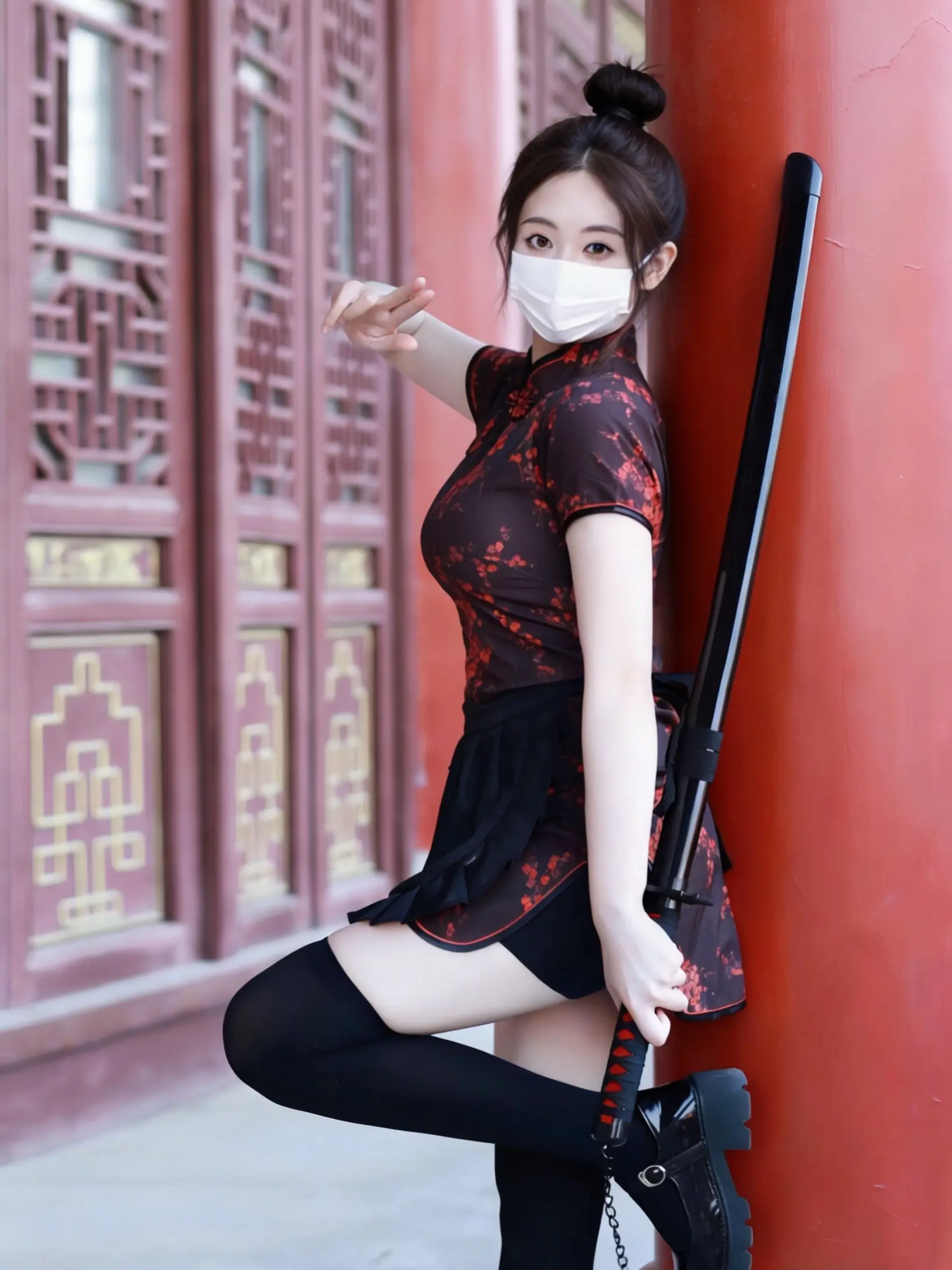 旗袍配刀又美又飒!这才是辣妹的打开方式!这套改良旗袍刀娘套装我真的爱疯了!
