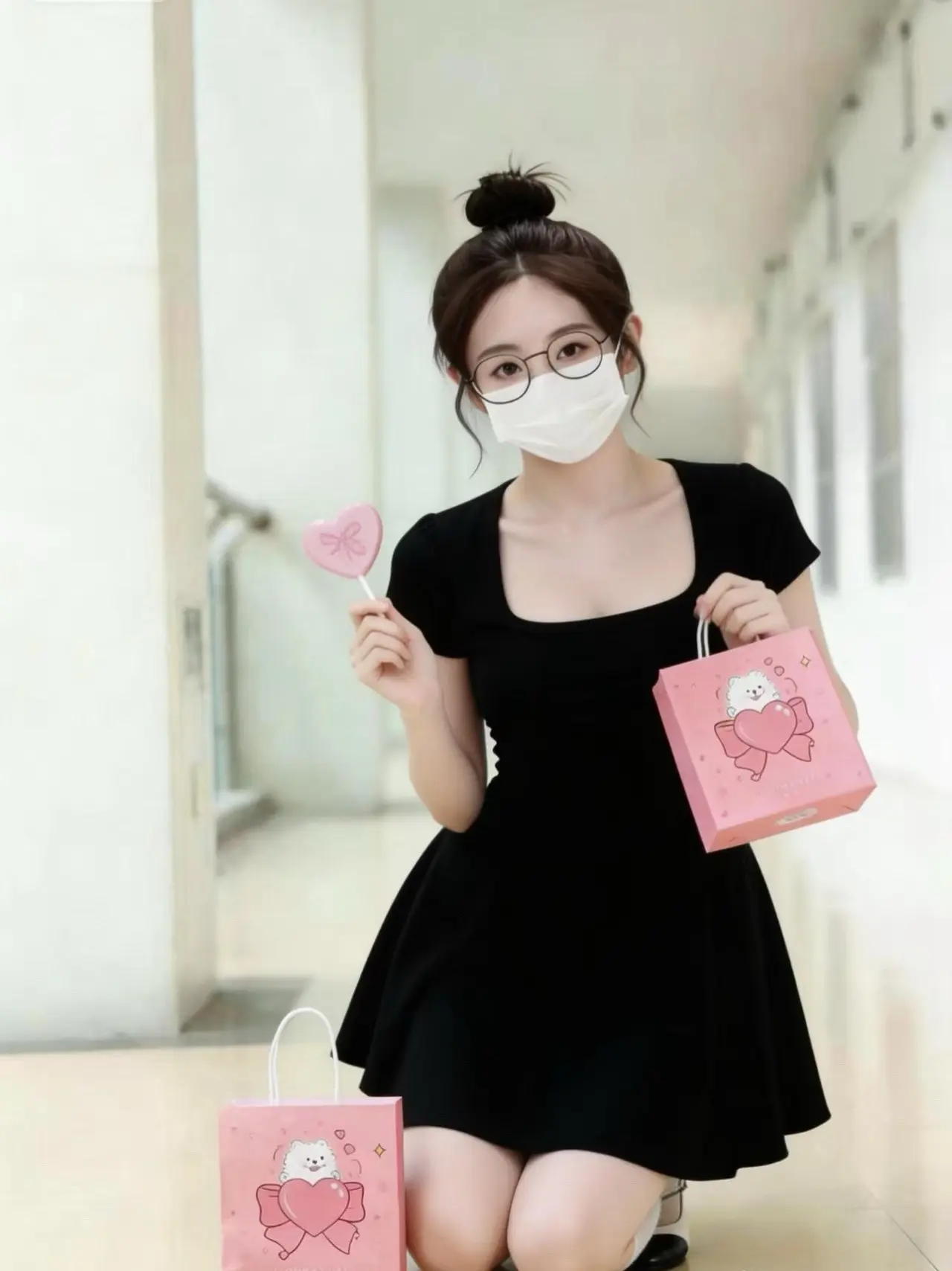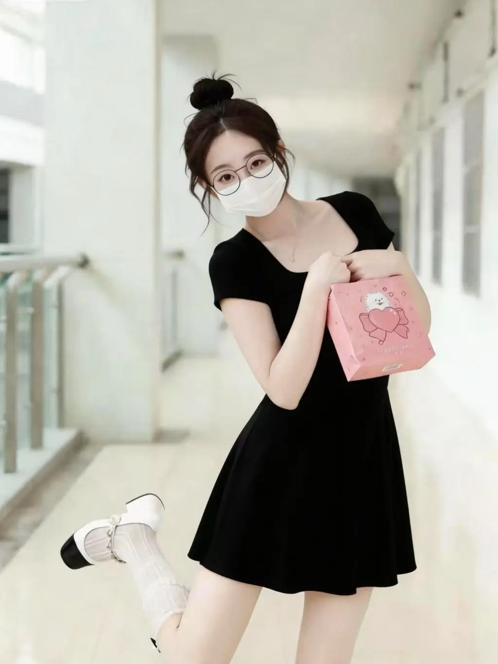 搭配丸子头、圆框眼镜和玛丽珍鞋,甜妹氛围感直接拉满,约会/出街都超合适!