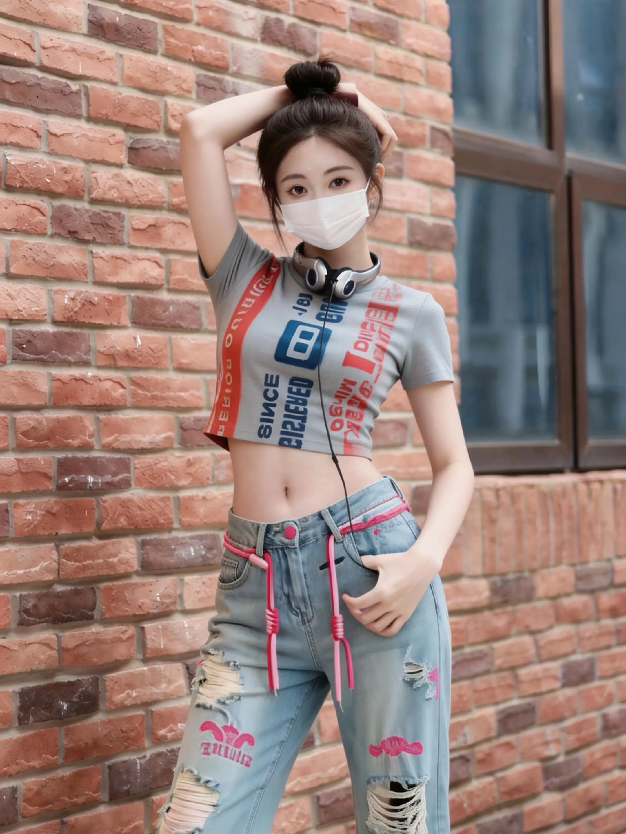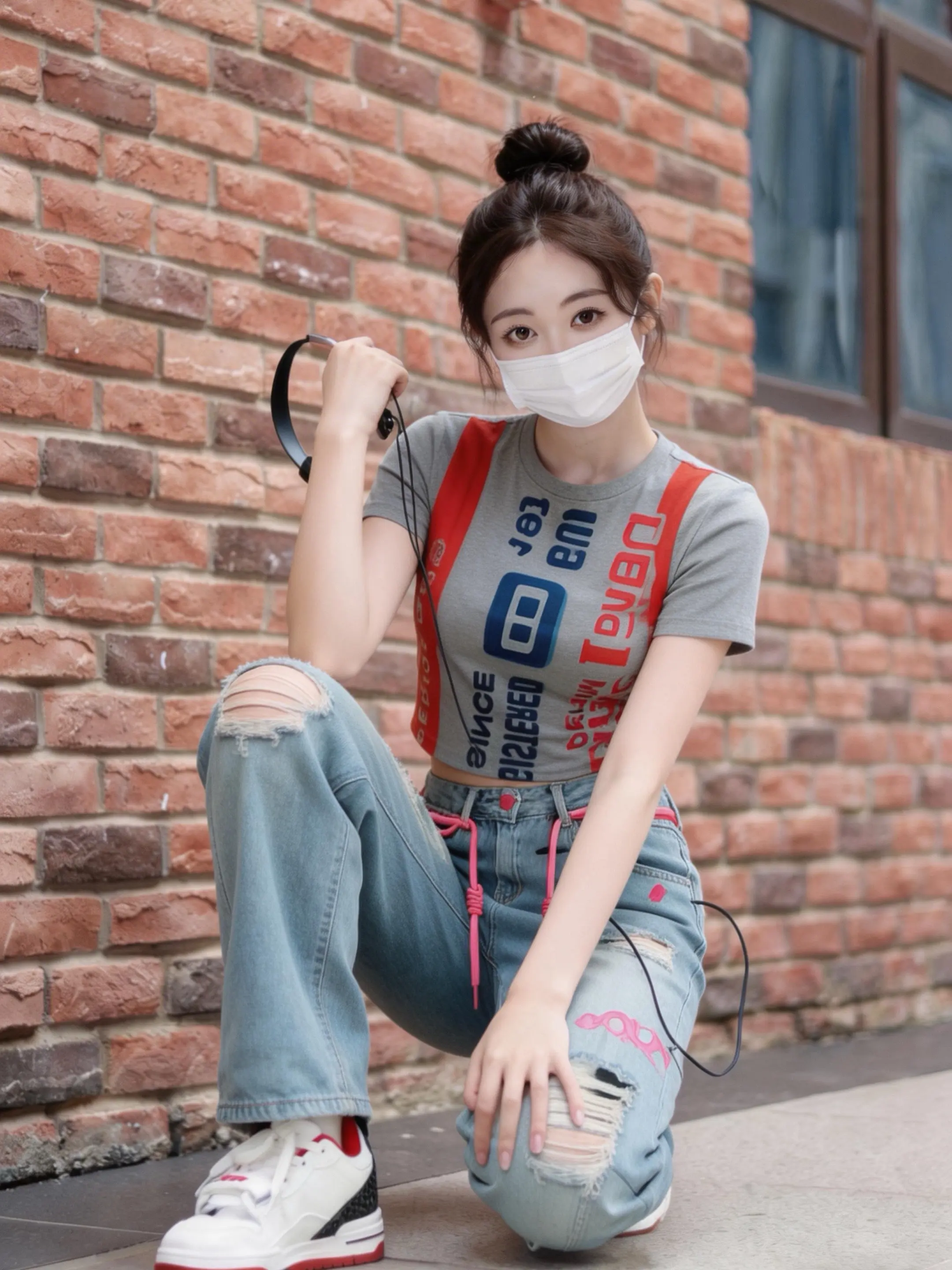 红砖墙+耳机的街头氛围感,拍照/拍视频都巨出片!