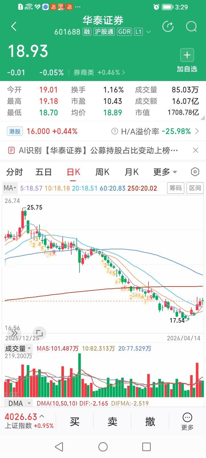 华泰证券,今天收盘下跌0.05%,市净率0.98倍。