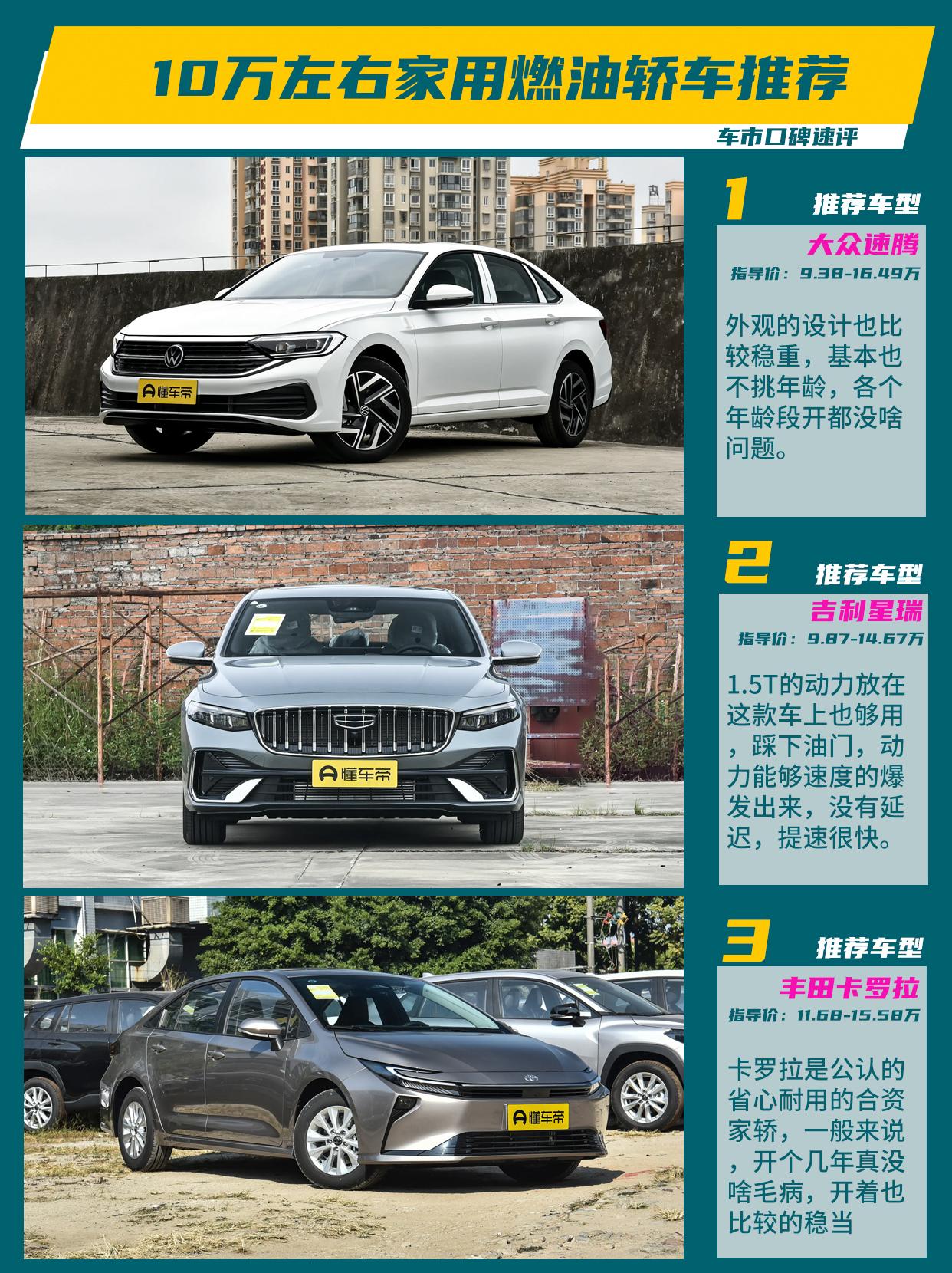 10万块钱左右的家用轿车可选择性还是挺强的,容易让人挑花眼。但是从受欢迎的角度来看,我感觉速腾、星瑞、卡罗拉这几款车比较不错,我们来聊一聊。
