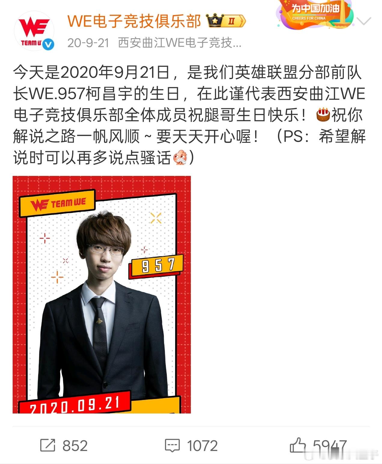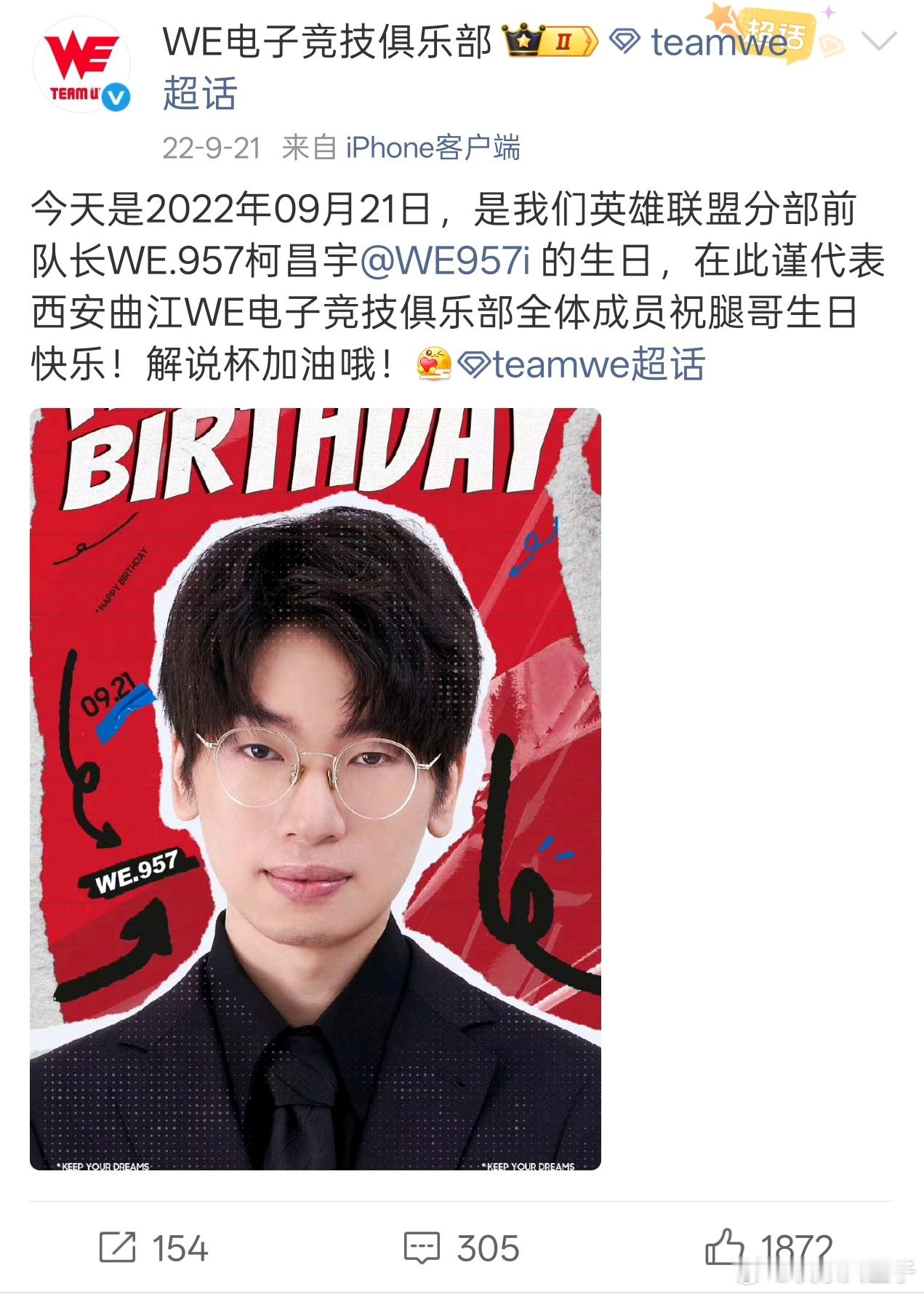 刚刚才发现,WE从15年至今,每年的9月21日都会为957庆生,而且每次都会制作新的海报,连续十一年从未间断。