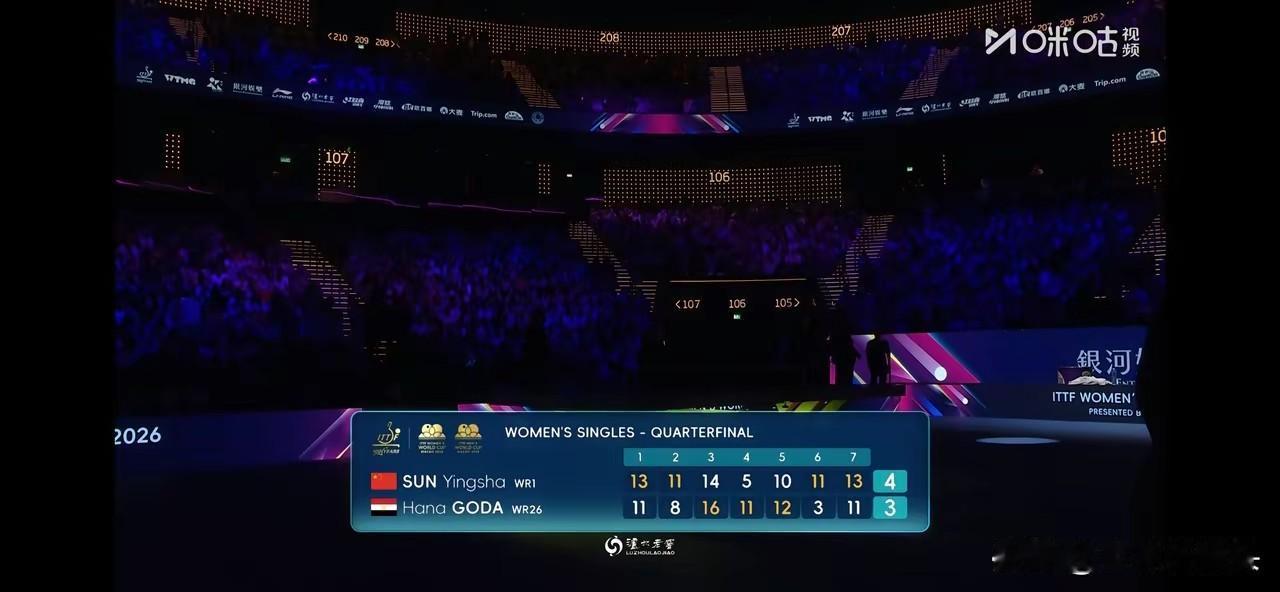 今日,莎莎又让球迷们“心跳不已”,不少球迷心跳加快、血压飙升。原本她能以3:0的大比分领先,可在第三局10:6领先时有所松懈,结果被对手以16:14逆转。随后她又连输两局,大比分变为2:3。在至关重要的第六局,莎莎状态神勇,以11:3击败对手,将总局数扳成3:3。球迷们见她状态如此之好,本以为决胜局能轻松获胜,不料开场就被对手打出1:5的比分,虽追至8:8,却还是让对手以10:8拿到赛点。就在众多球迷感到绝望之际,莎莎顽强地把比分追至10:10,并以11:10反获赛点,没想到又被对手追平至11:11。比赛紧张到极点,莎莎却临危不乱、表情淡定,最终以13:11险胜对手,晋级前四。