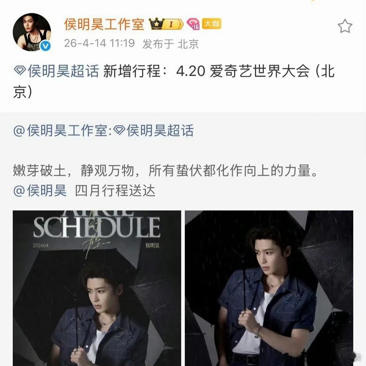 敖瑞鹏 侯明昊确认出席爱奇艺世界大会,你期待谁?